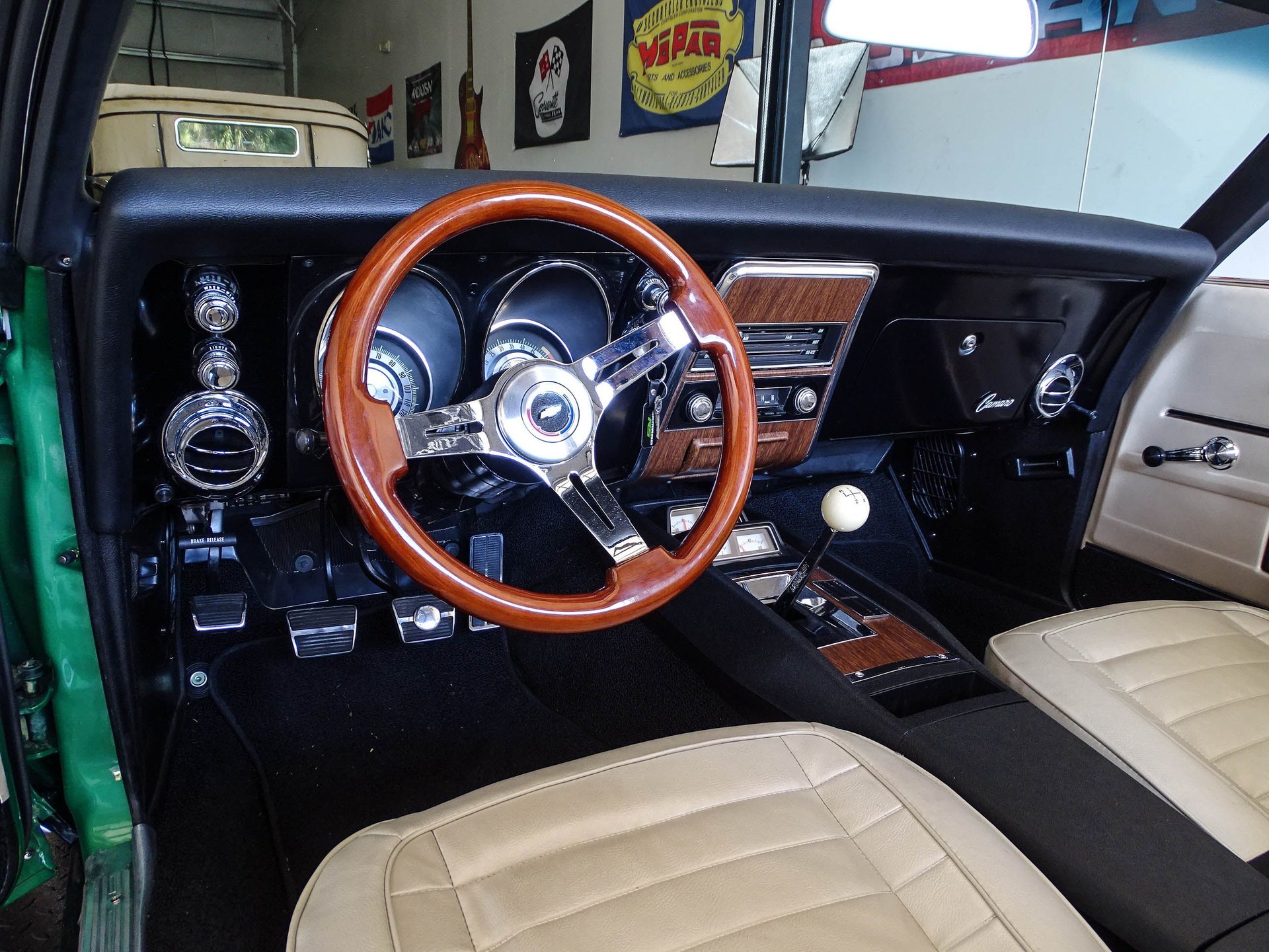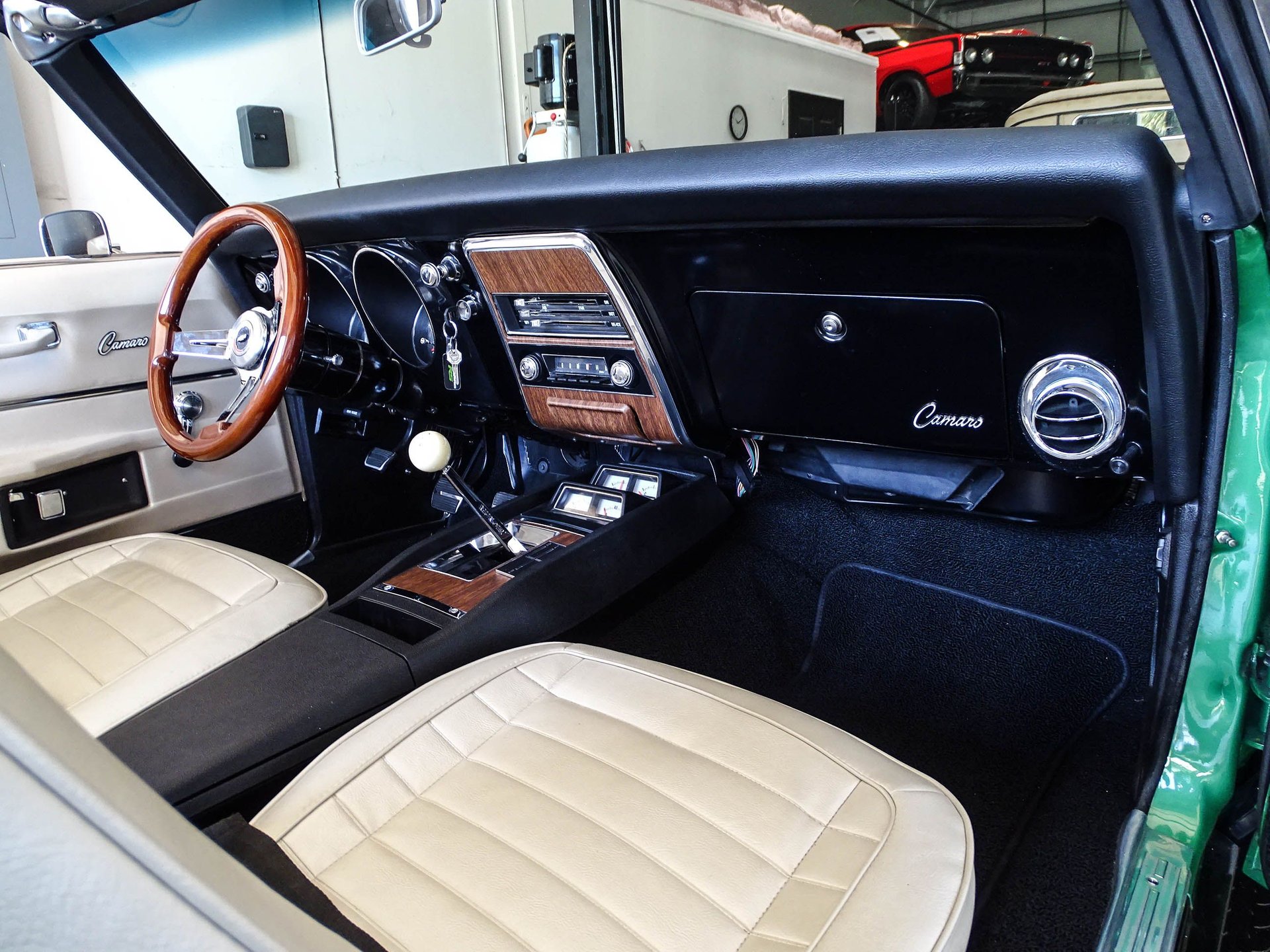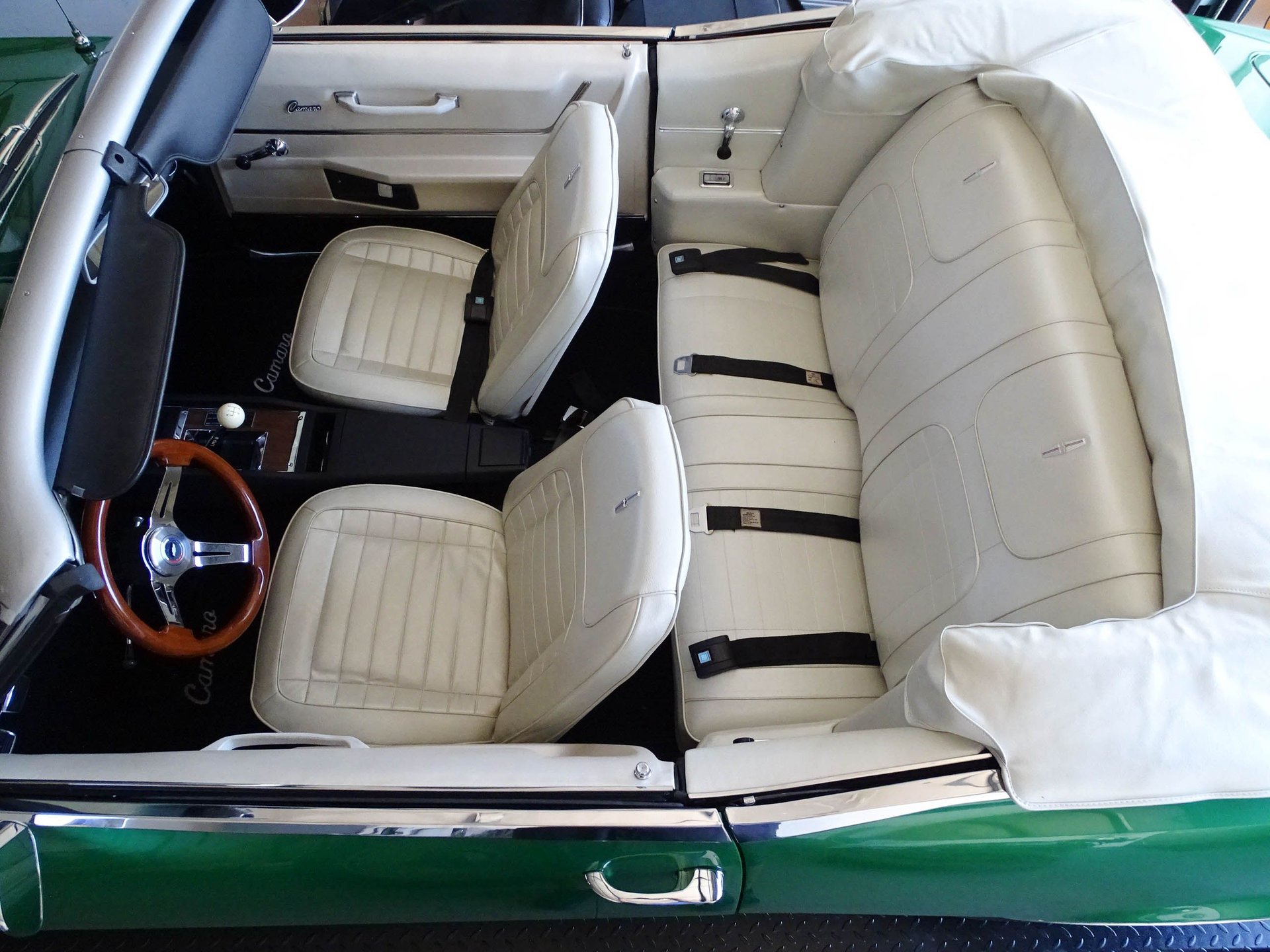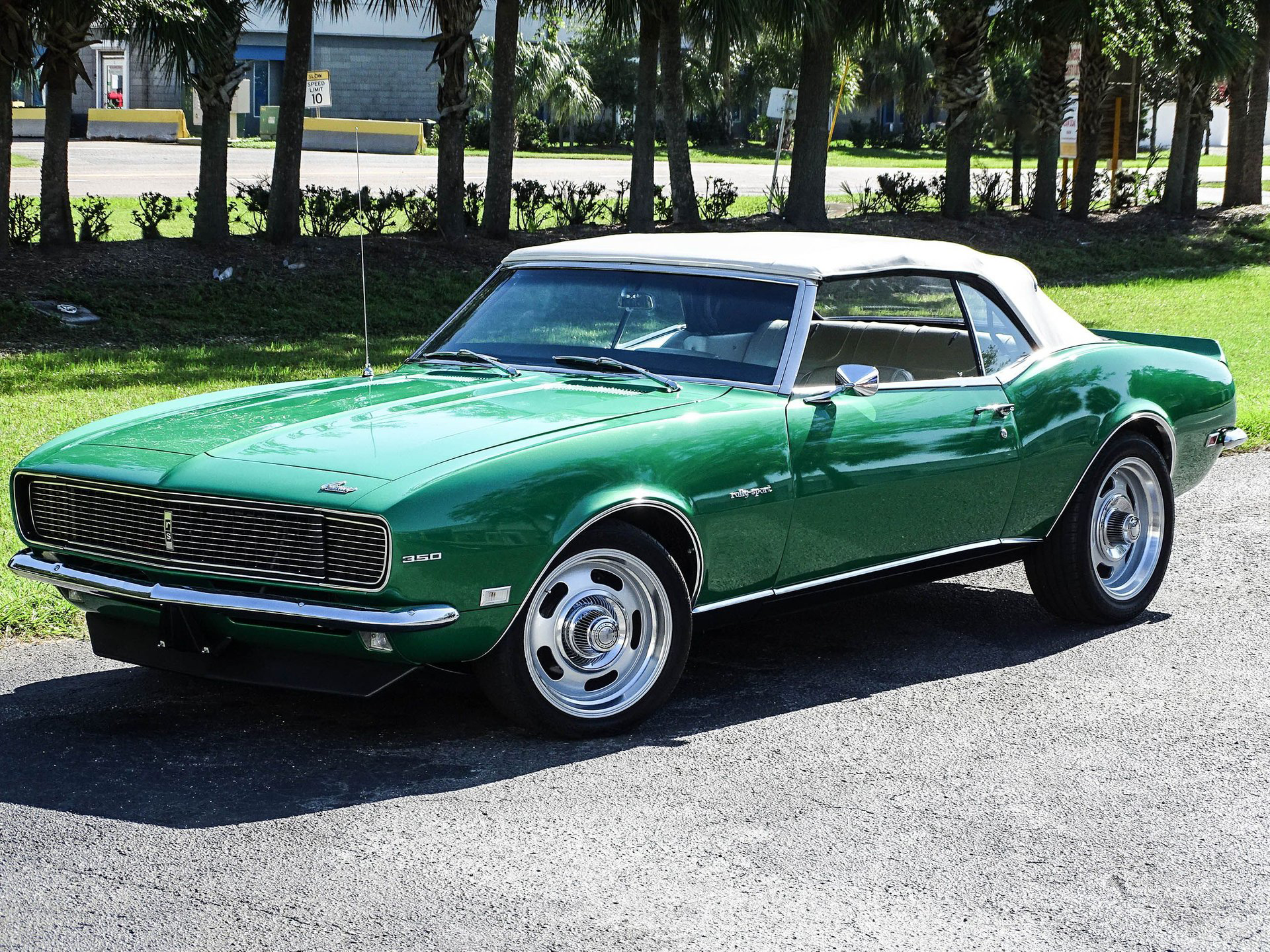 Take a gander at this stunningly restored 1968 Chevrolet Camaro RS tribute convertible! This beauty was restored in 2017 and has been garage kept since, and only driven on nice days. We have photos of the restoration that go with the car. Starting with the exterior, the Rallye Green paint with a white convertible top really catches the eye. The best thing about that is that it's the original paint color (J Code). Larger Rally wheels give this Camaro a bit of a modern flair and are sure to have people doing a double take. Those wheels paired with front and rear spoilers, hideaway headlights, and the Rally Sport rear valance, gas cap, and emblems make this a real show-stopper. Open the door and you will find white vinyl bucket seats, a center console, wood steering wheel, and the very popular tic-toc-tach. The interior is all new as part of the extensive restoration as well and looks great with Camaro embroidered floor mats. Under the hood is a crate 350 CID V8 with a rumble through the dual exhaust that is pure muscle car! The engine is a JEGS crate engine with a mild cam and 4-barrel carburetor. Power steering and power front disc brakes with drilled and slotted rotors make this car easy to drive and enjoy. There is just enough chrome under the hood to make you proud to show it off at car shows. The chrome air cleaner, chrome valve covers, and chrome alternator top off this clean engine compartment with a bit of flair. This Camaro is so clean, you could eat off the underside! With only 1,200 miles since the restoration was completed, this Chevy muscle car needs nothing but a proud new owner. Other new parts during the restoration included: tires, wheels, convertible top, battery, alternator, ignition, voltage regulator, and much more. The car also comes with the original steering wheel if the new owner prefers that look. Out of 235,147 Camaros built in 1968, only 16,927 were V8 convertibles like this one!