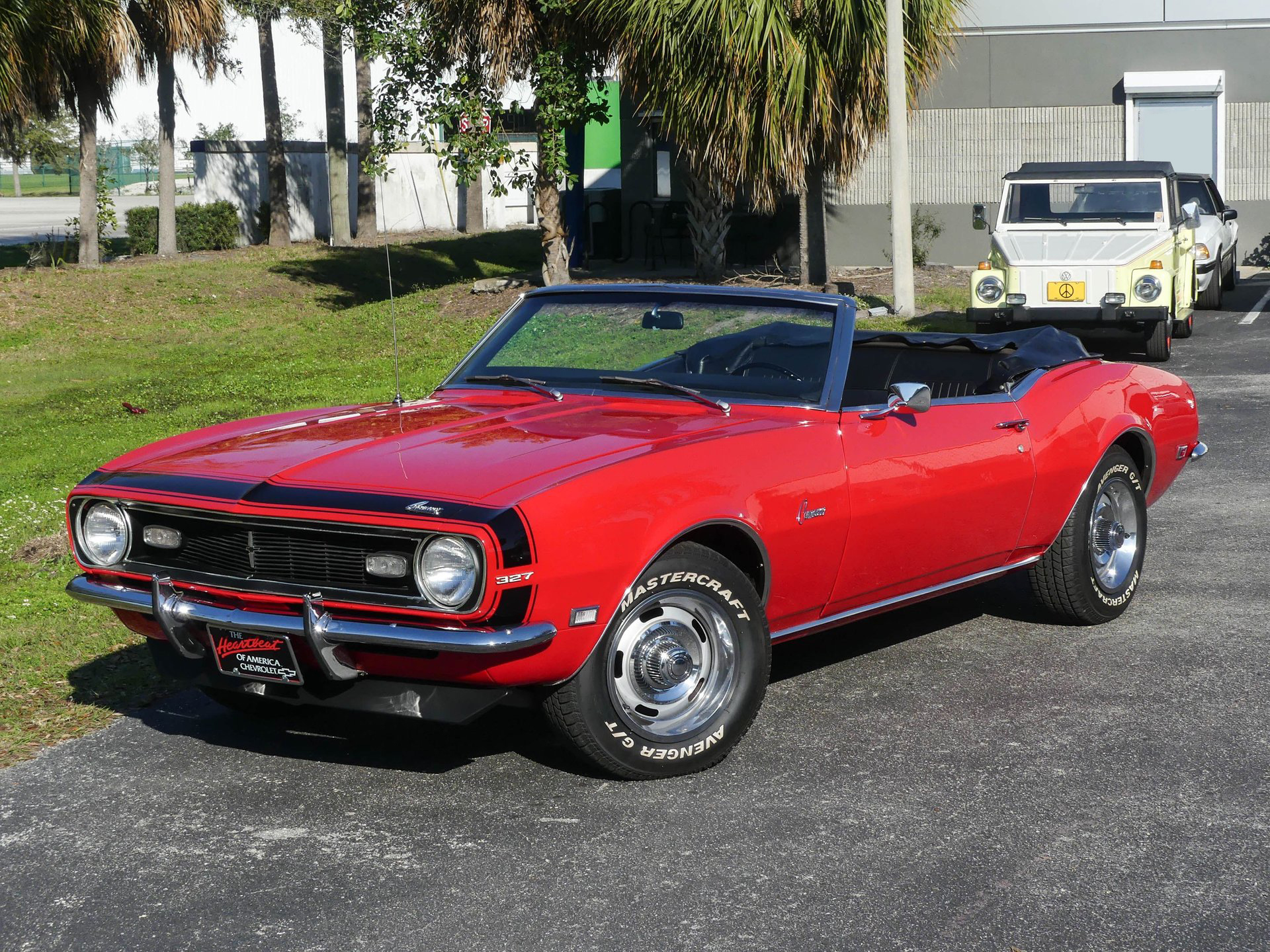First-generation Camaros are the crown jewels of American muscle, and this breathtaking example is an absolute showstopper that commands attention everywhere it goes! Its lustrous red exterior pops against the sleek black convertible top, while bold rally wheels complete the iconic look that turns heads at every corner.
