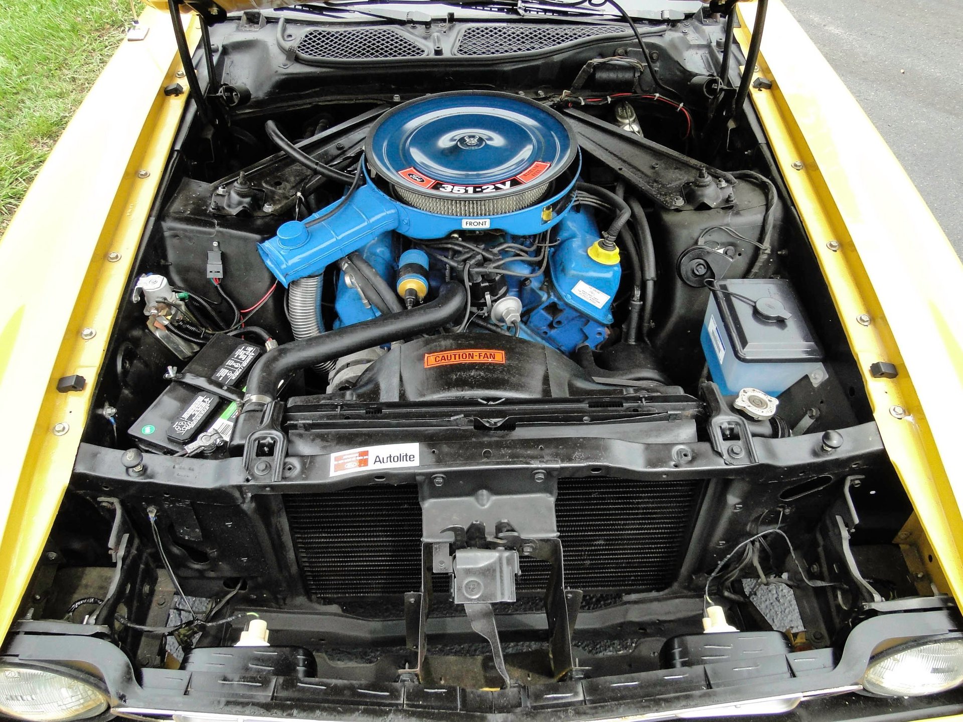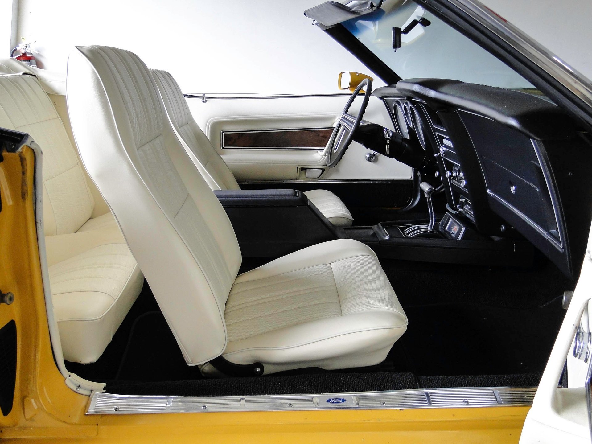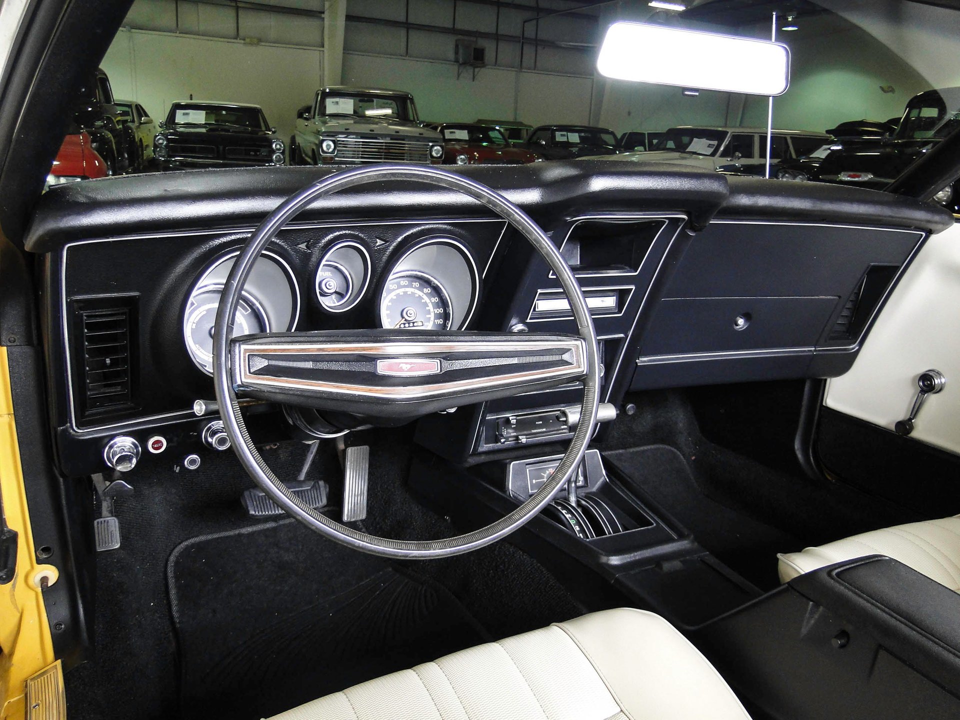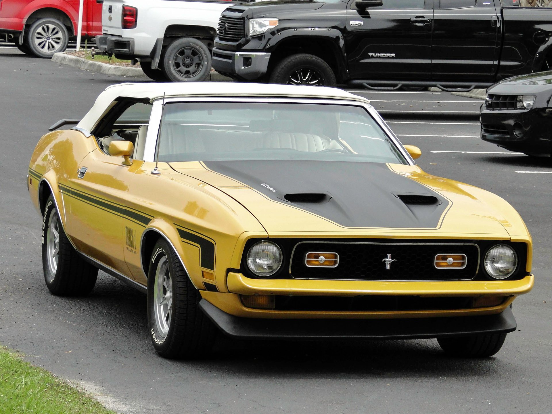 Cool, rare and fun are three ways you could describe this 1971 Ford Mustang Convertible with Mach 1 styling. It's cool simply because it's a Mustang, a muscle car, and a drop top all in one. It's rare since ford only produced 6,121 convertibles in 1971. Only 884 convertibles had the H-code 351 engine paired with an FMX transmission. Even more rare, only 27 total Mustangs in 1971 were painted Medium Goldenrod Yellow with a CA trim code! The 351 Cleveland under the hood breathes through a Mach 1 style hood with open air cleaner and purrs through dual exhaust with chrome tips. It rests in a very nicely detailed engine compartment with power steering. That V8 is mated to an FMX automatic transmission and then connects with a Ford 9” rear end to put the power to the ground. Inside is in great shape with white knitted vinyl bucket seats with a center console. Mach 1 stripes and 15” Halibrand style alloy wheels with real knock-offs give this car a very muscular profile. The brake calipers have been painted yellow as well and look great peeking through the wheels. Front and rear spoilers and bold Mach 1 decals finish off the look, making this car attractive from every angle. The trunk is nicely finished with a correct trunk mat, jacking instructions sticker and spare tire. This Mustang was restored in 2007 and has been driven less than 1,000 miles since the restoration was completed. Don't miss your chance to own this one of a kind collectible Mustang convertible.