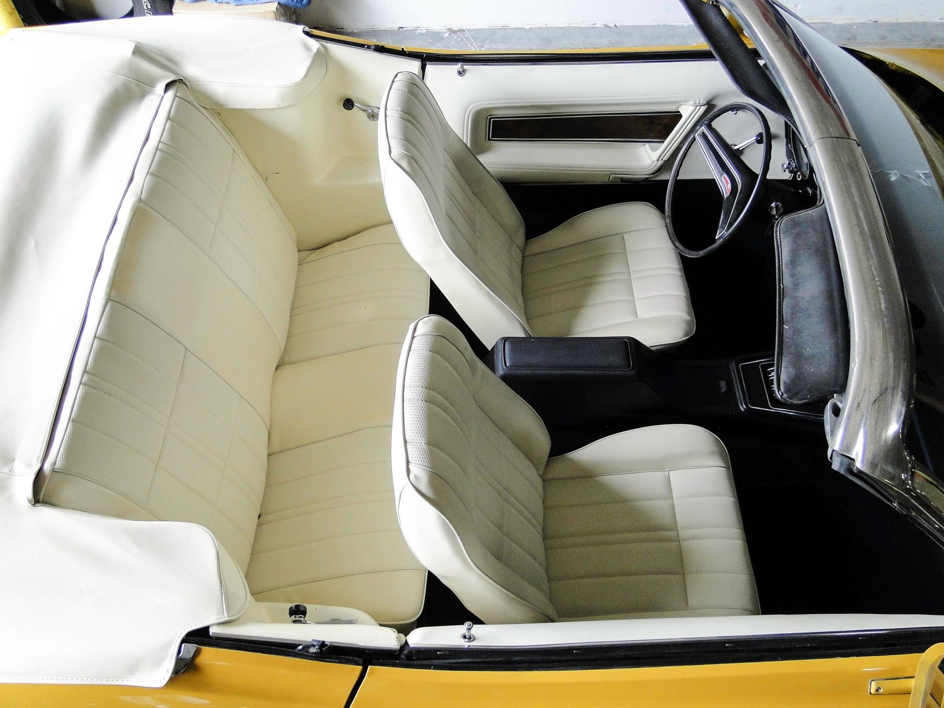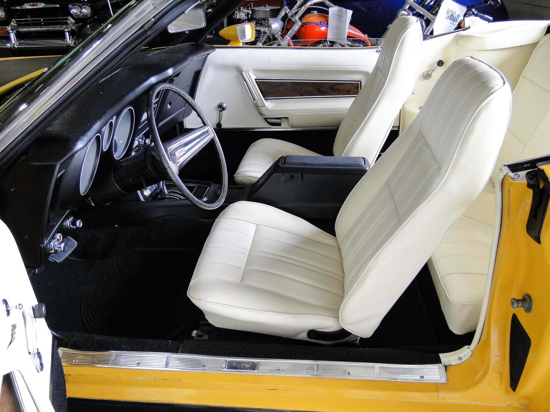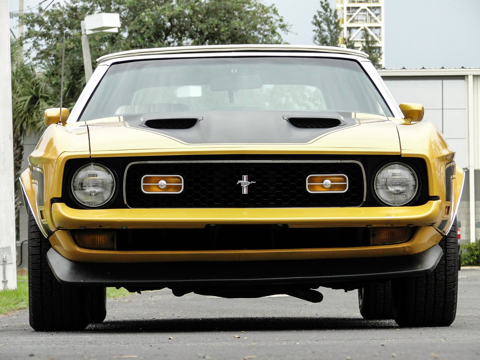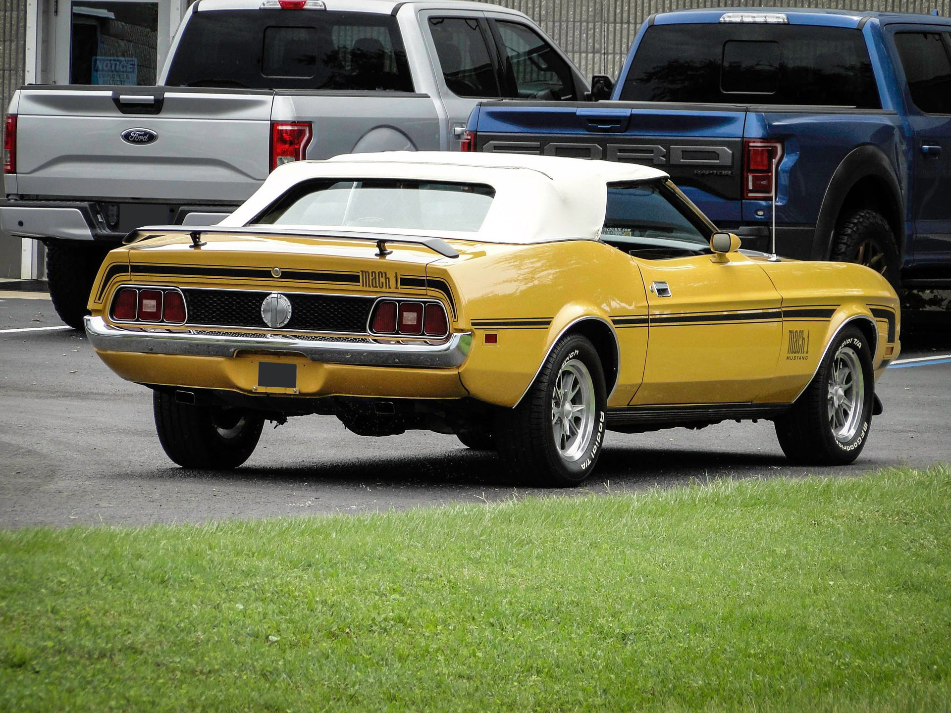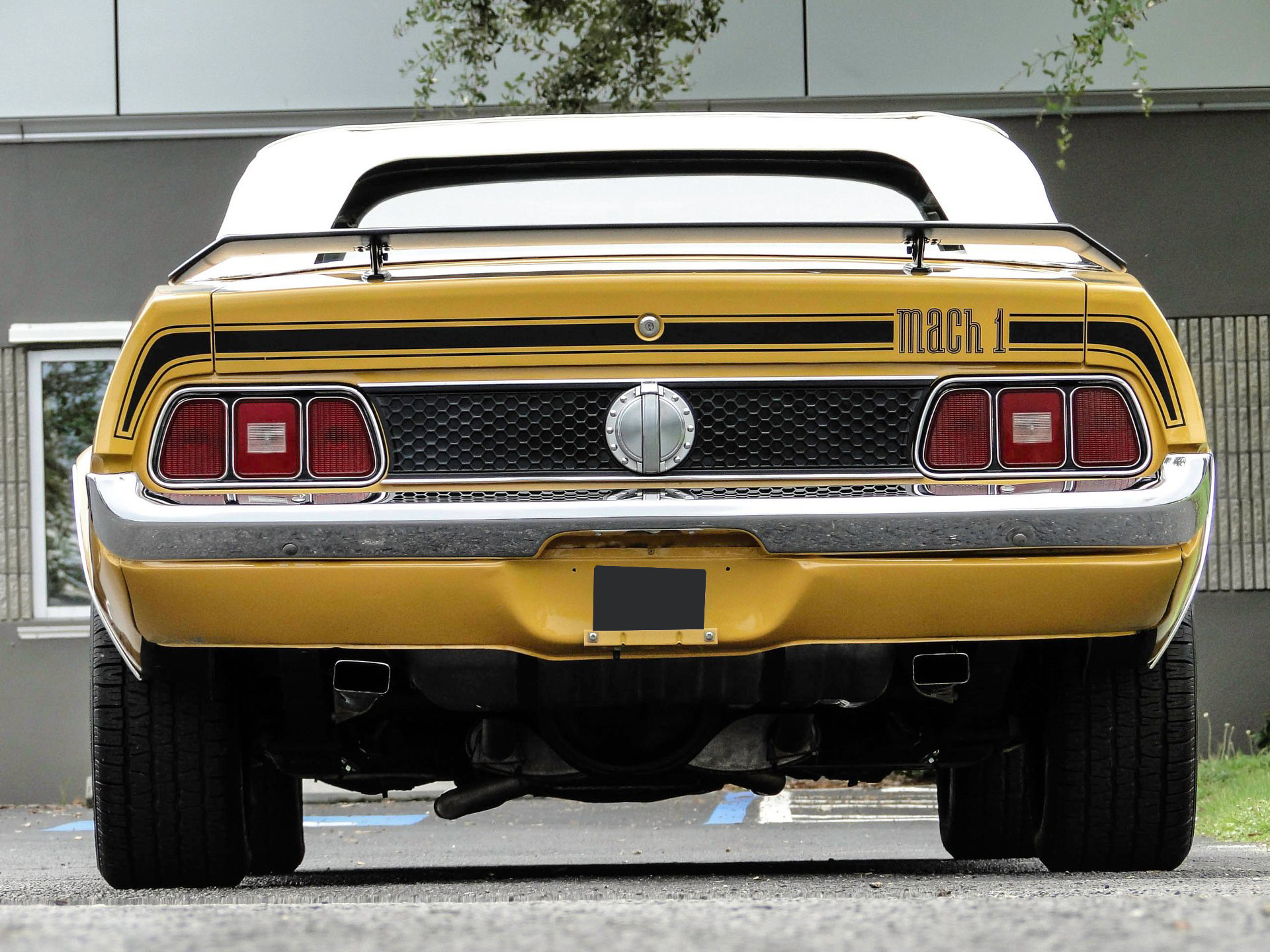 Cool, rare and fun are three ways you could describe this 1971 Ford Mustang Convertible with Mach 1 styling. It's cool simply because it's a Mustang, a muscle car, and a drop top all in one. It's rare since ford only produced 6,121 convertibles in 1971. Only 884 convertibles had the H-code 351 engine paired with an FMX transmission. Even more rare, only 27 total Mustangs in 1971 were painted Medium Goldenrod Yellow with a CA trim code! The 351 Cleveland under the hood breathes through a Mach 1 style hood with open air cleaner and purrs through dual exhaust with chrome tips. It rests in a very nicely detailed engine compartment with power steering. That V8 is mated to an FMX automatic transmission and then connects with a Ford 9” rear end to put the power to the ground. Inside is in great shape with white knitted vinyl bucket seats with a center console. Mach 1 stripes and 15” Halibrand style alloy wheels with real knock-offs give this car a very muscular profile. The brake calipers have been painted yellow as well and look great peeking through the wheels. Front and rear spoilers and bold Mach 1 decals finish off the look, making this car attractive from every angle. The trunk is nicely finished with a correct trunk mat, jacking instructions sticker and spare tire. This Mustang was restored in 2007 and has been driven less than 1,000 miles since the restoration was completed. Don't miss your chance to own this one of a kind collectible Mustang convertible.