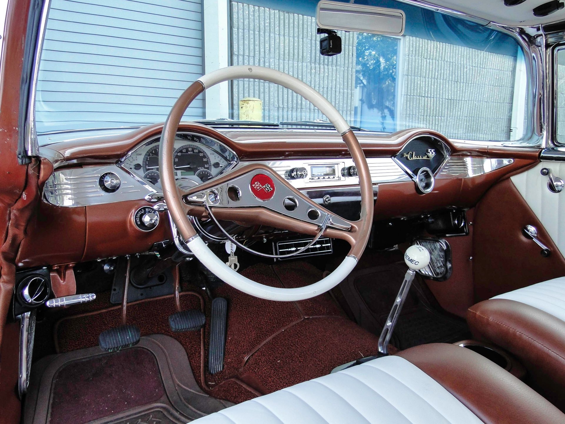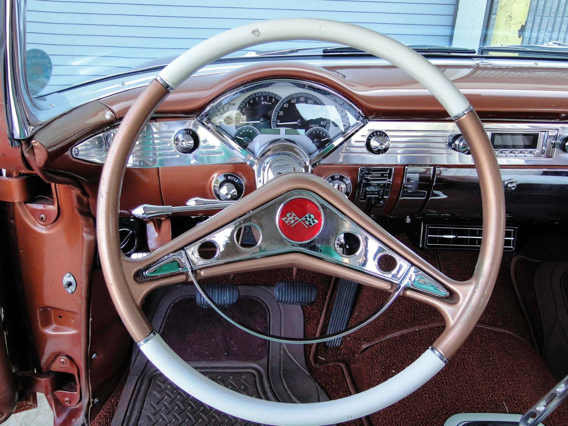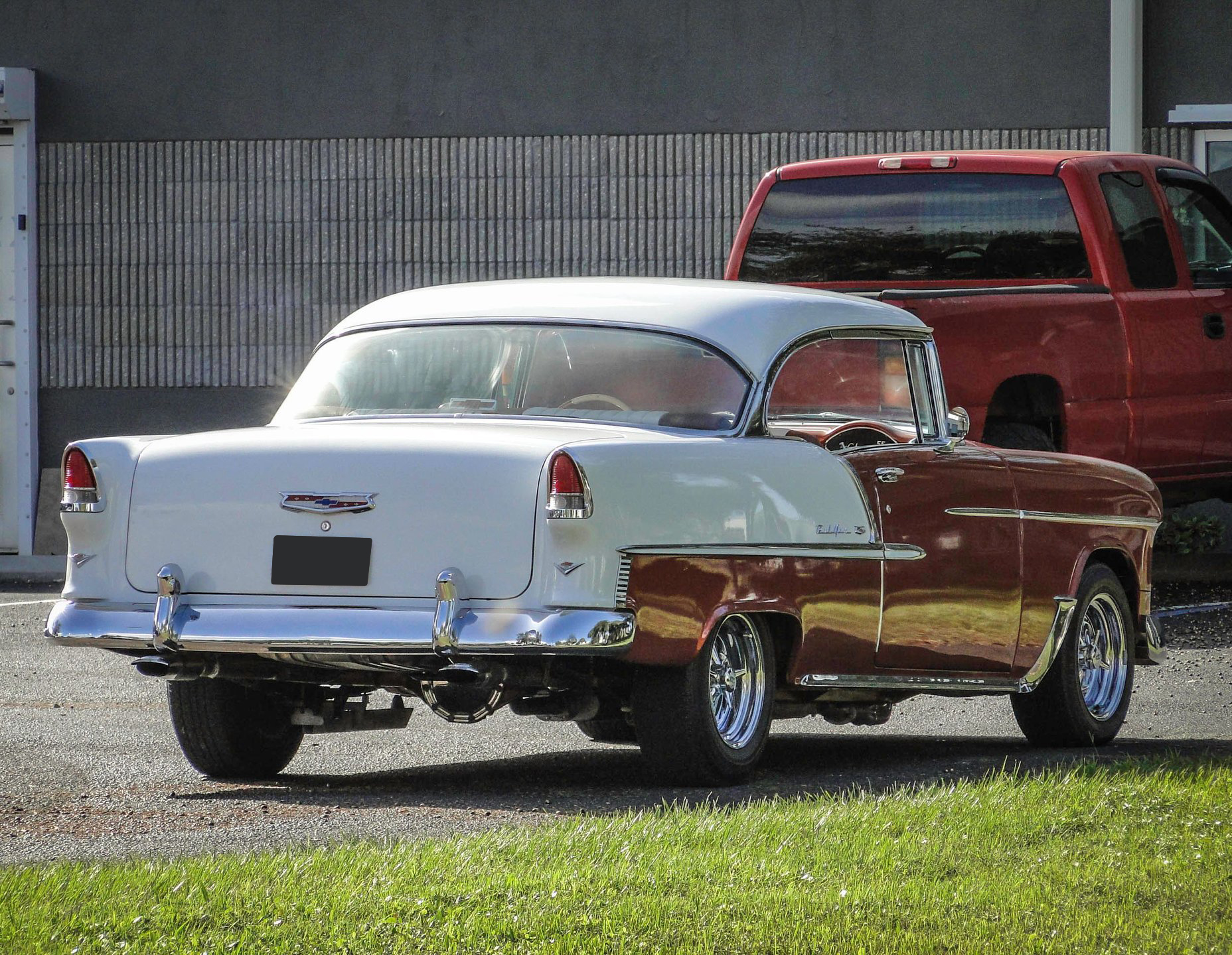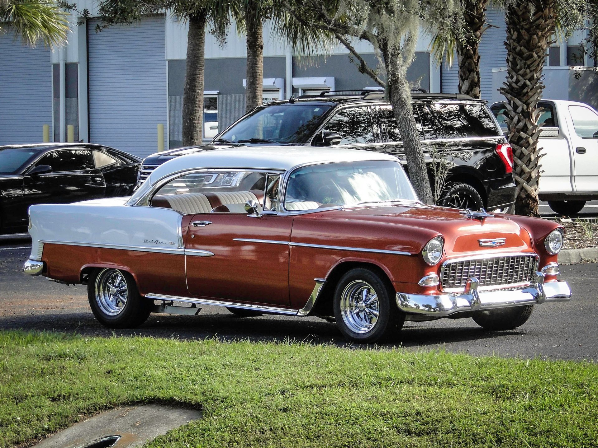 Check out this 1955 Chevrolet Bel Air 2-door hardtop street rod! This is a real attention getting in Bronze Metallic paint paired with classic white. Chrome Cragar SS wheels with chrome backers and a hot rod stance will make this Tri-Five the envy of any car show. Under the hood sits a mildly built 350 CID V8 engine with Edelbrock carburetor, polished intake, Mallory ignition and ceramic coated headers. The engine is kept cool by a Griffin aluminum radiator with dual electric fans. Everything about the engine compartment is ready to show! Polished inner fenders, polished pullies, chrome valve covers and air cleaner, chrome brake booster and master cylinder and more! How about a Tremec 5-speed manual to back up that V8 powerplant? That's right! This Bel Air leaves you in control of the shifting. With power steering and power disc brakes, it is very easy to drive while you slam through the gears. A 12-bolt rear end with chrome differential cover handles putting power to the ground and looks great doing it. Traction bars have been added to eliminate any axle hop. The inside is custom, but not over the top. With bucket seats, an Impala steering wheel, custom gauge cluster, chrome glovebox door, modern AM/FM/AUX/USB player in the dash and a custom center console it is comfortable and sure to draw stares. The upholstery is nicely done in Bronze and White to match the paint scheme. A custom shifter handle has been installed and is topped off with a white Tremec shifter ball. It gives a classic hot rod look, right up until people realize it shows a 5th gear! The trunk is clean and simple with a spare tire and carpet to match the interior. Vintage Air A/C has been added and is a great addition for summer cruising. This is a Canadian built Bel Air, which is a neat backstory for people at car shows and cruises. The 10-37D on the cowl tag lets you know it was a Bel Air from the factory. This Bel Air received a full restoration just 3,127 miles ago and needs nothing but a new driver. It comes with full documentation for the build and has a clean and clear Florida title.