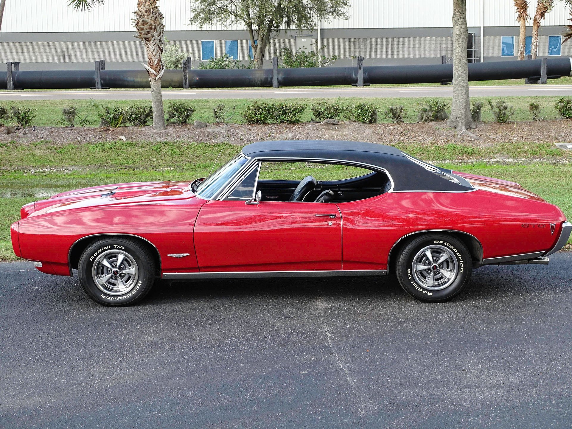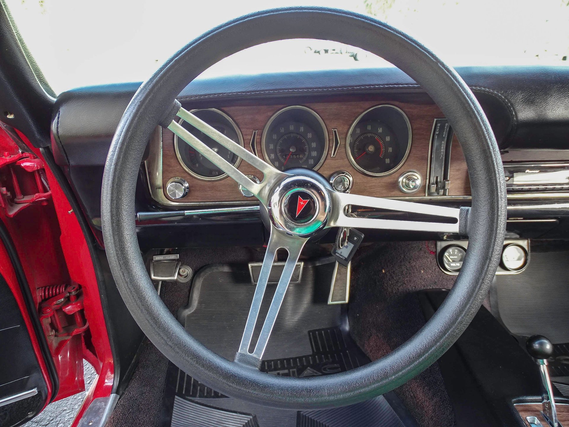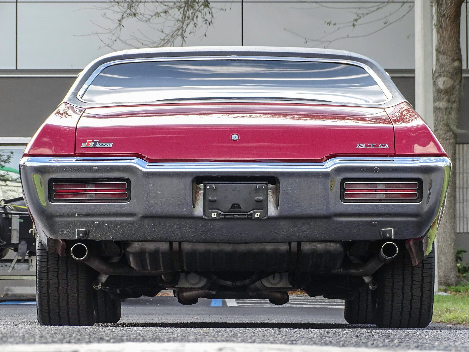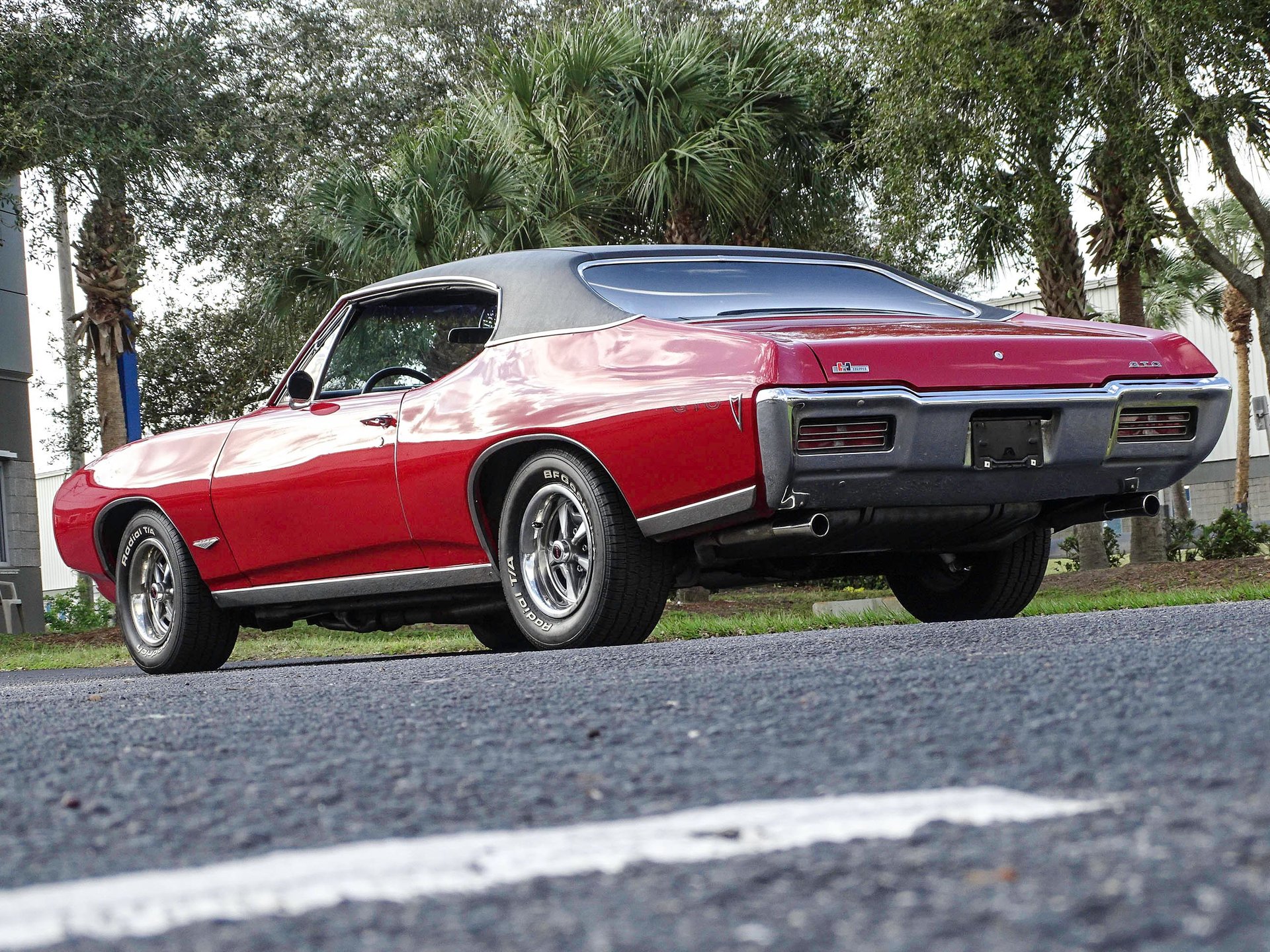 Take a look at this beautiful Solar Red 1968 Pontiac GTO. It is mated to an automatic transmission which runs to a 12-bolt rear end with 3.36 posi gears! This GTO was restored about 2,000 miles ago including an engine and transmission rebuild. The engine was kept basically stock except for a mild Crane camshaft for a nice rumble. The transmission received a shift kit during the rebuild for firm shifts. It is handled through a Hurst Dual-Gate (his and hers) shifter on the center console. The Solar Red is what the car left the factory with, and is paired with the correct Black on the interior. This GTO is well documented with PHS Documentation, a detailed history, receipts of the restoration, and a nice parts list. With power steering and power brakes this GTO is easy to drive. A factory tachometer allows you to keep an eye on the RPMs while some aftermarket gauges hang under the dash to monitor engine conditions. A Pioneer AM/FM/CD player has been added along with extra speakers for a sound system that is up to today's standards! Other options include a vinyl roof, rally wheels, raised white letter radial tires, vinyl interior and seat belts. The same owner has had this car for the last 17 years and it has been very well cared for and garage kept. It is ready to show and cruise! Red lights have been added under the hood and wheel wells to really make this car stand out at car shows. If you're looking for a numbers matching Pontiac muscle car, check out this stunning 1968 GTO!