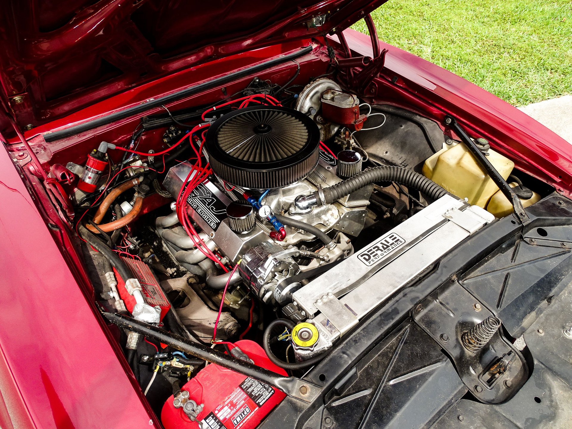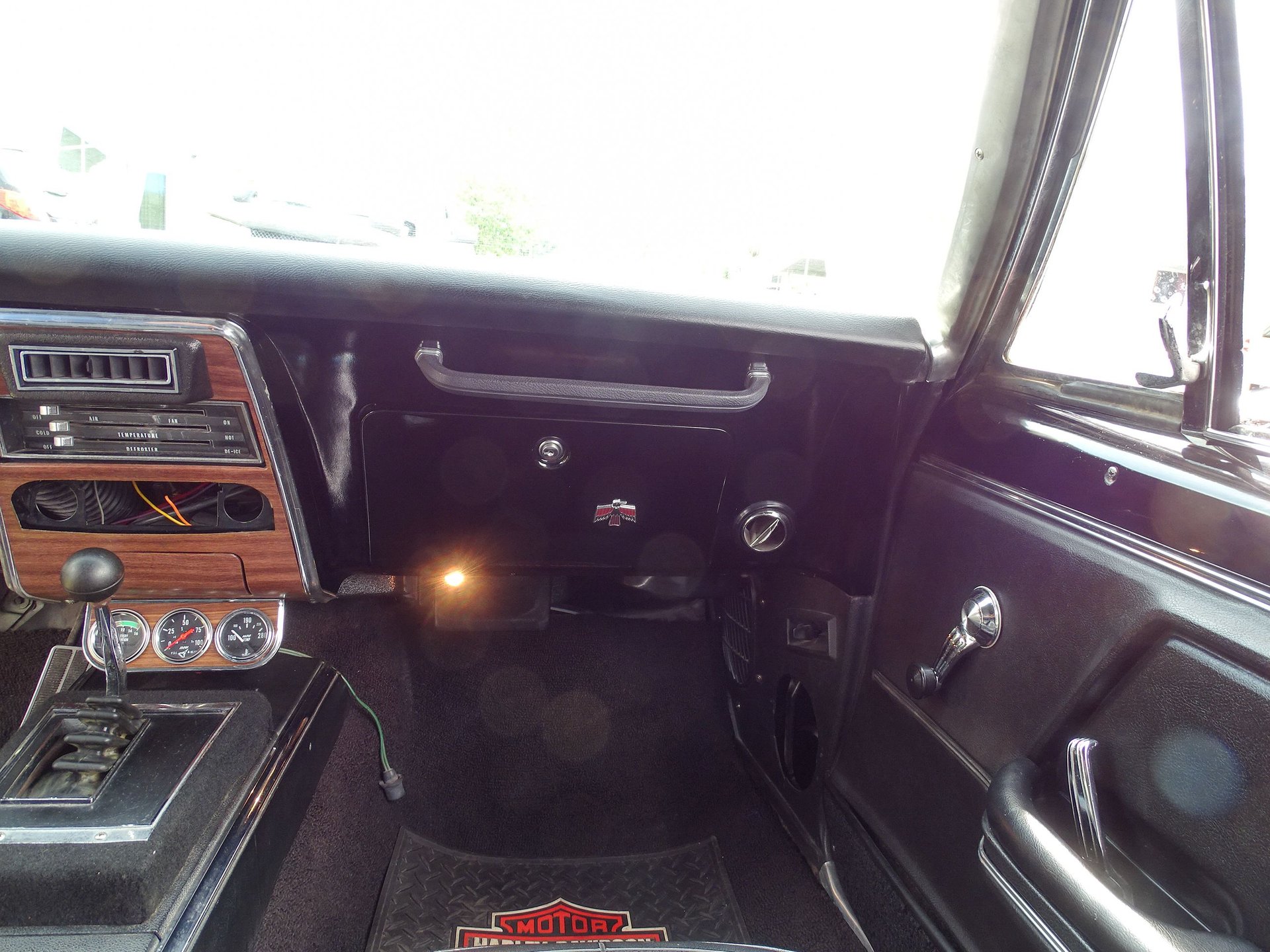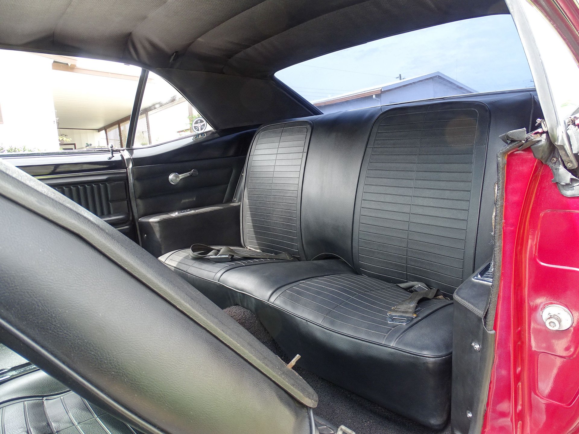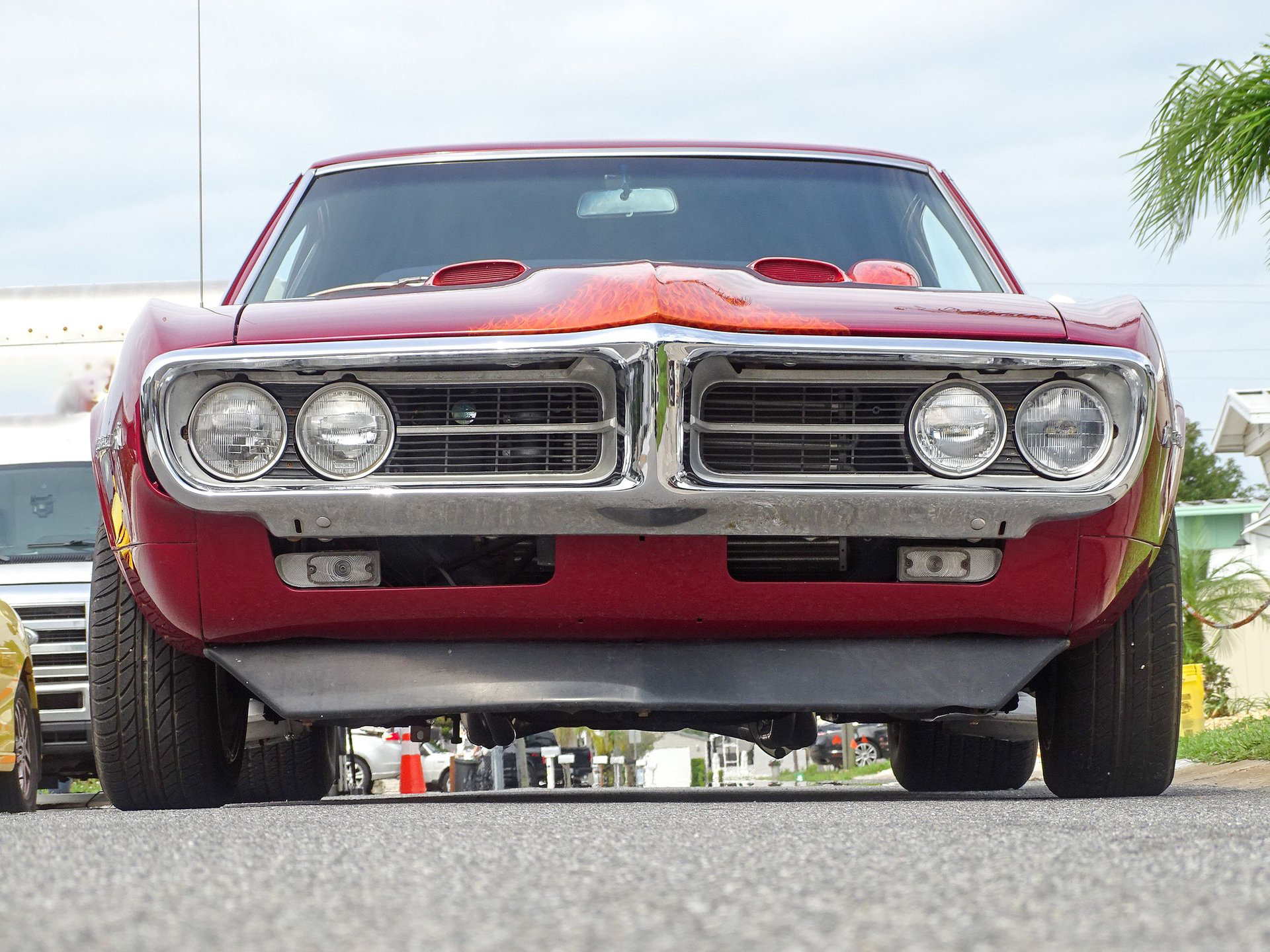 First Generation Firebirds are incredibly cool and have been gaining in value and appeal in recent years. They are the sister car to the Chevrolet Camaro but have a look that is uniquely their own. The chrome grill with dual headlights on each side scream 1960s muscle car! In the rear the taillights are also different from the Camaro and are divided with a Firebird emblem and Pontiac badging. It has a sex appeal that ties in nicely with the sleek look achieved by the front spoiler and rally wheels. Firebird script on the fenders and Firebird emblems on the quarter panels ensure people will know what they're looking at from any angle. Under the hood is a 383 Stoker CID V8 engine with a 4 barrel carburetor connected to an automatic transmission running to a 10-bolt rear end to complete its powertrain assembly. This Firebird has full-length headers and side pipes. Inside is complemented with Midnight black interior and comfortable bucket seats. The Firebird is simple and clean, painted in a gloss red complimented with painted orange ghost flames. Under the hood is raw power with a 383 Stroker engine and side exhaust pipes to give an aggressive stance while turning heads. The Firebird has a great classic muscle car sound to go along with the stance, body lines and wheels. Red gloss paint with ghost flames is always good on a classic car and the black interior plays very well off of it.