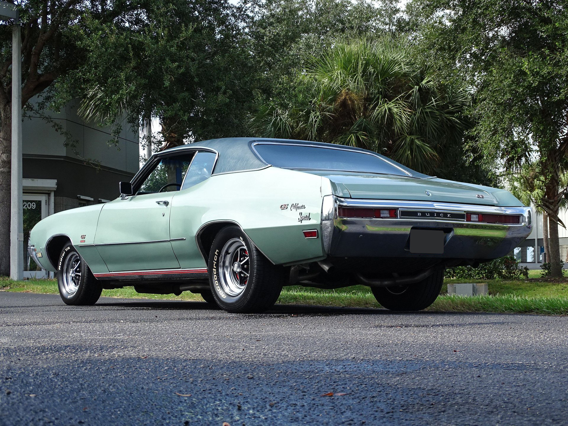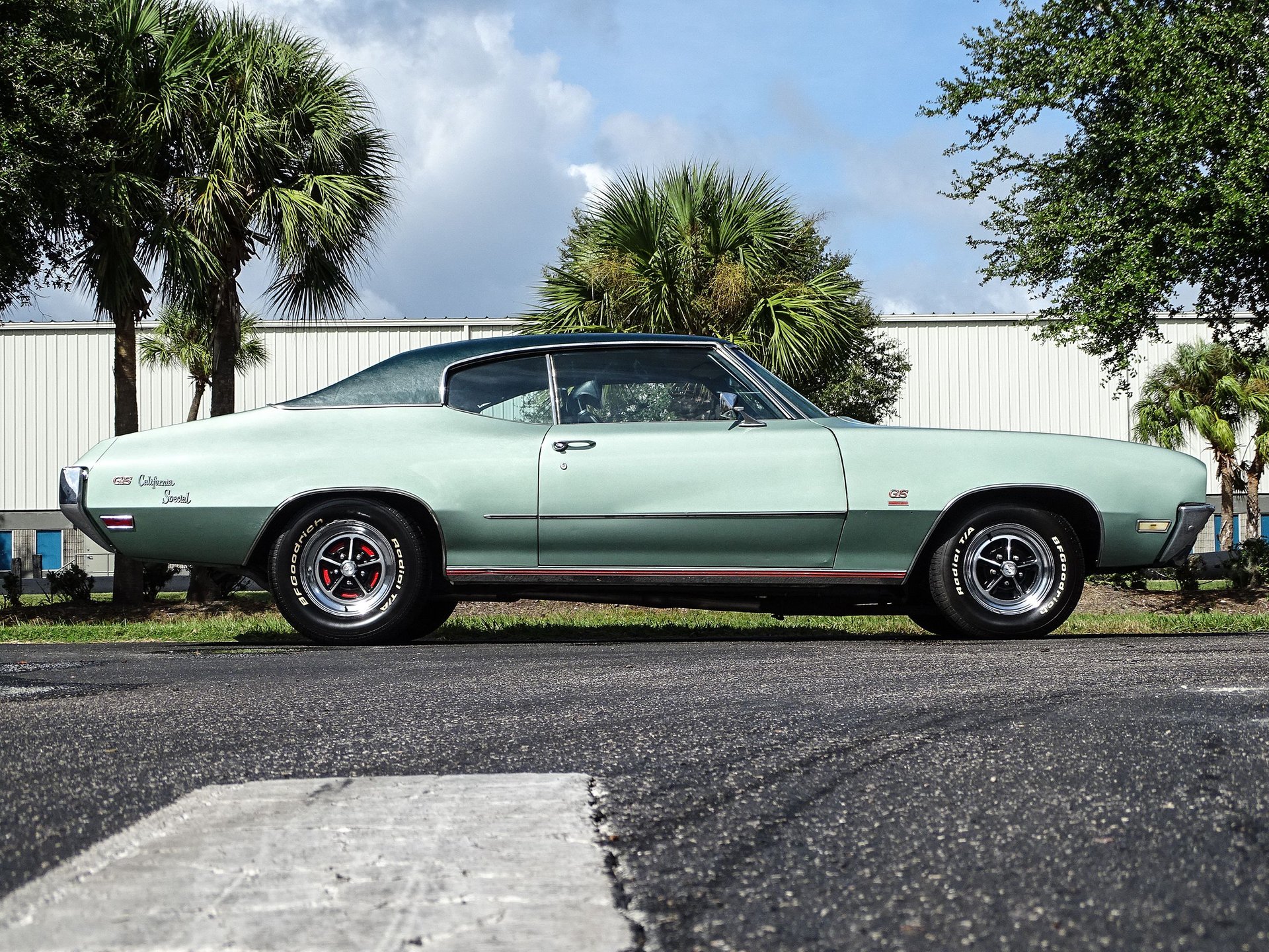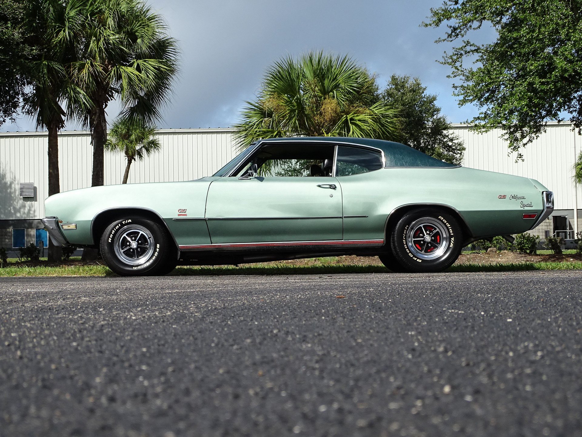 The interior has been completely redone with black vinyl bucket seats, new dash pad, new carpet, new headliner and it is in exceptional condition! Power steering and power front disc brakes make this car a dream to drive. Bucket seats and a center console with horseshoe shifter are pure muscle car, and an aftermarket tachometer reminds you this baby is built for speed! The beautiful Light Green metallic paint is topped off with a Deep Green vinyl roof which ties in nicely to the rally wheels. The GS was built on Buicks Skylark platform which shared many components with the Pontiac GTO, Oldsmobile Cutlass, and Chevrolet Chevelle. It is good company to be in from a brand known for luxury cars! Real muscle car enthusiasts know that the Buick GS isn't something to shy away from. It is just as powerful and raw as those other GM products, but something you are much less likely to run into at car shows! If you're looking to stand out from the crowd of GTOs and Chevelles, give this GS a good hard look.