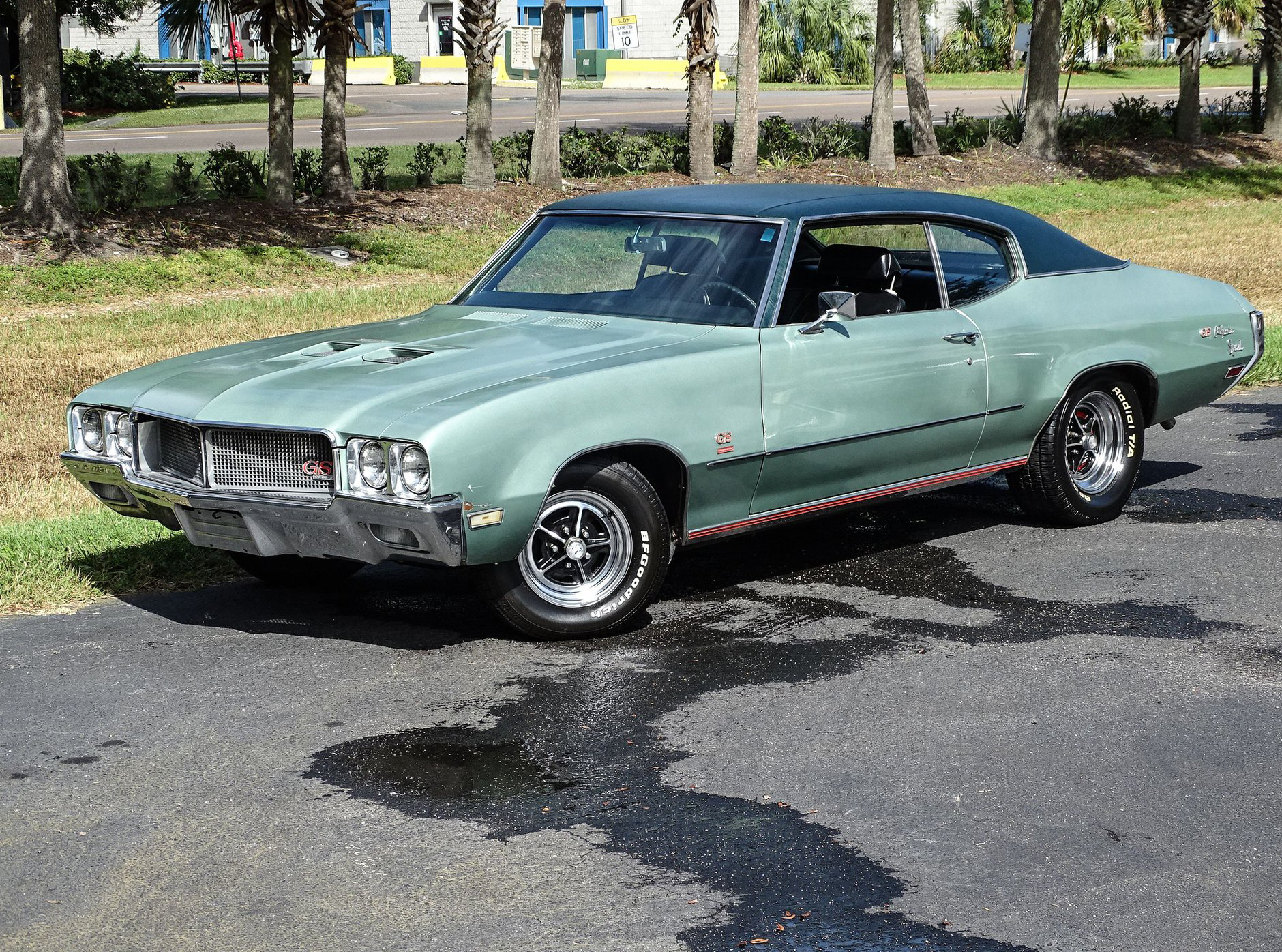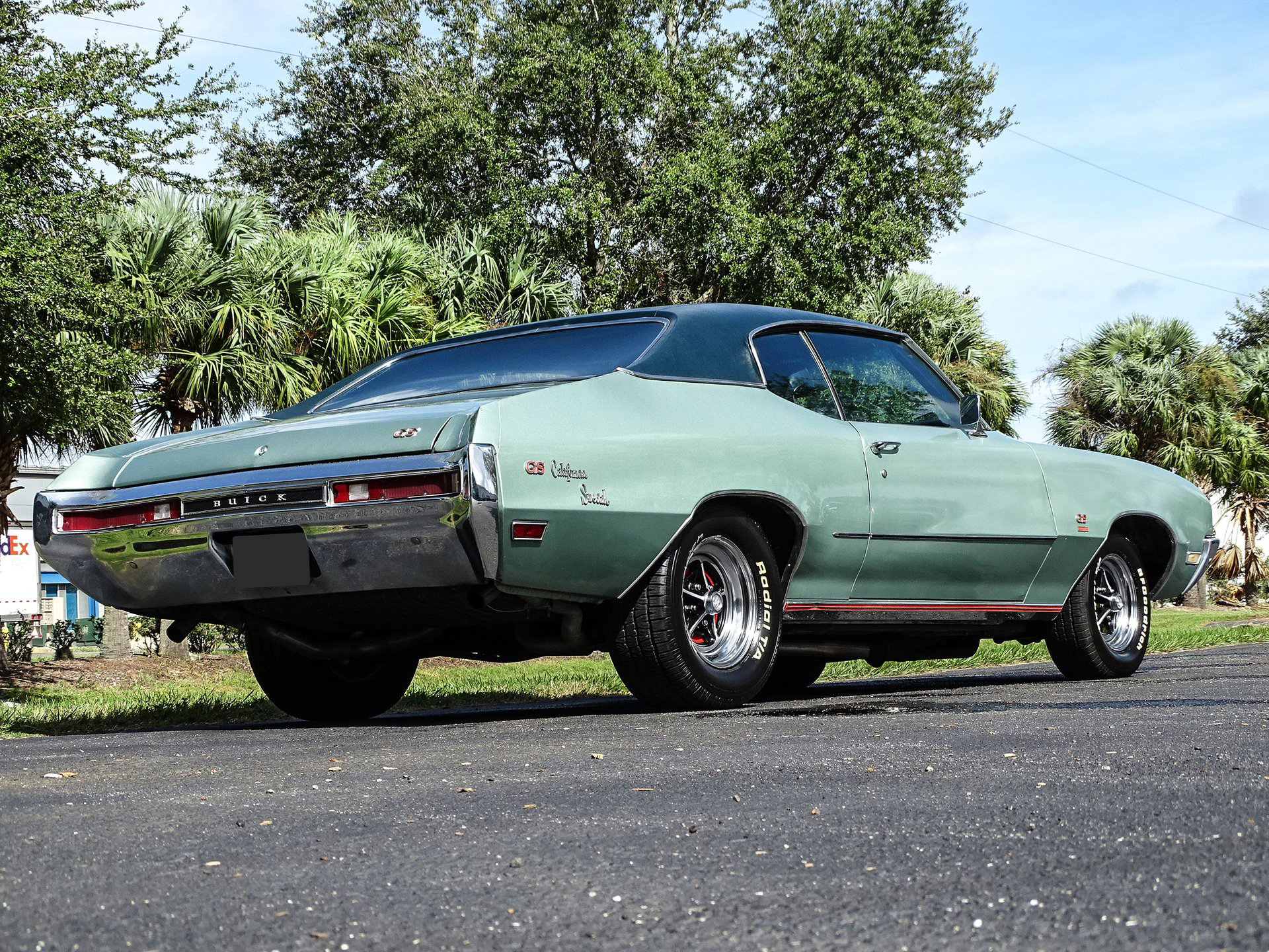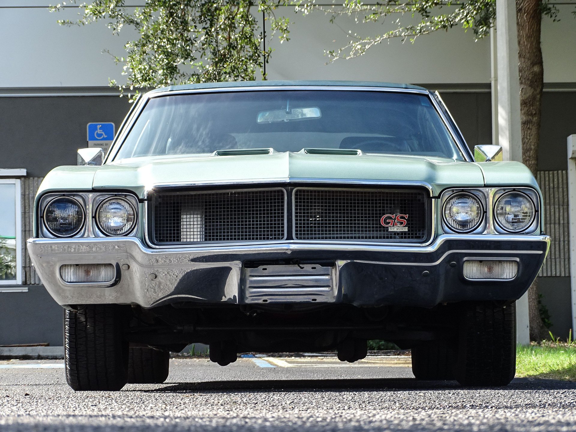 The interior has been completely redone with black vinyl bucket seats, new dash pad, new carpet, new headliner and it is in exceptional condition! Power steering and power front disc brakes make this car a dream to drive. Bucket seats and a center console with horseshoe shifter are pure muscle car, and an aftermarket tachometer reminds you this baby is built for speed! The beautiful Light Green metallic paint is topped off with a Deep Green vinyl roof which ties in nicely to the rally wheels. The GS was built on Buicks Skylark platform which shared many components with the Pontiac GTO, Oldsmobile Cutlass, and Chevrolet Chevelle. It is good company to be in from a brand known for luxury cars! Real muscle car enthusiasts know that the Buick GS isn't something to shy away from. It is just as powerful and raw as those other GM products, but something you are much less likely to run into at car shows! If you're looking to stand out from the crowd of GTOs and Chevelles, give this GS a good hard look.