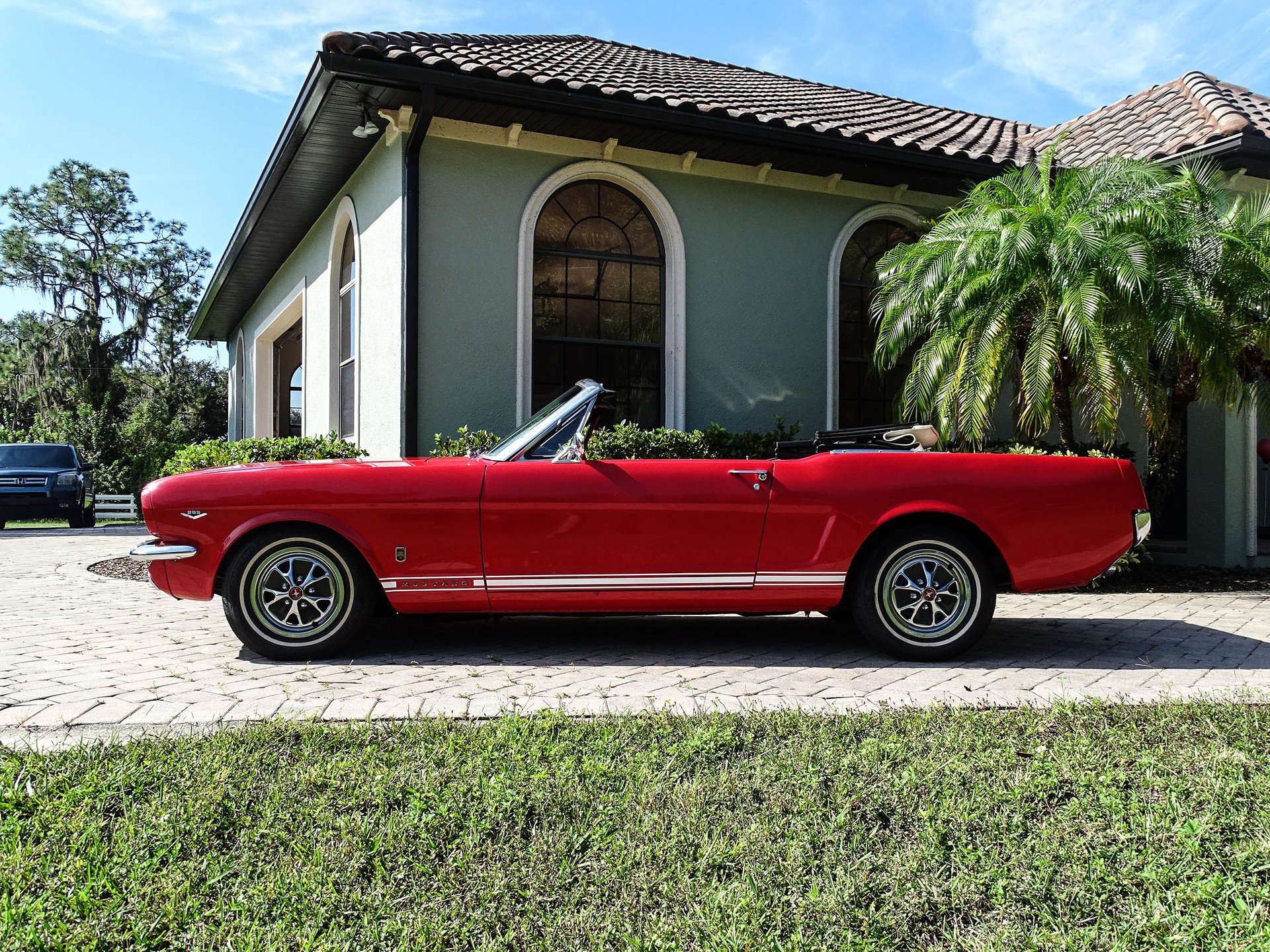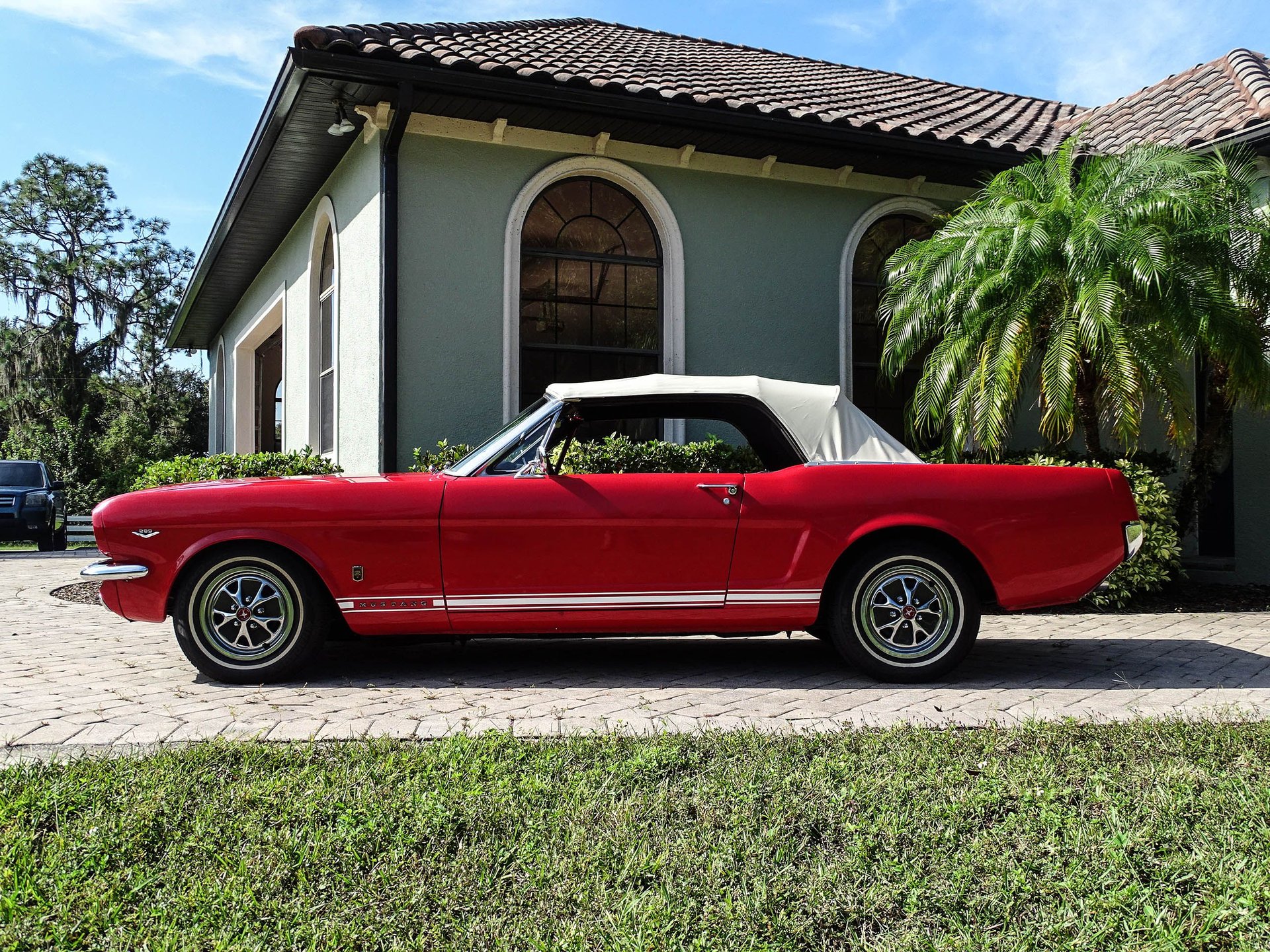 Look closely at this 65 Mustang and you will see it has been dressed up as a GT with its stripes and badging! This pony car makes for a lot of fun given is has a 289 CID V8 and mated to a 3-Speed transmission. Even better is the reliability of the 3-Speed tranny Ford is known for and its mated to a 9" rear end that Ford offered in 1965. This "Little Red Sally" is dressed up with wire mesh spark wire covers, Ford GT cobra valve covers, chrome air intake, sharp and crisp red and black painted engine compartment. Completed with dual exhaust and attention paid to the details this baby shows extremely well. Front disc brakes make this pony stop just as good as it goes!