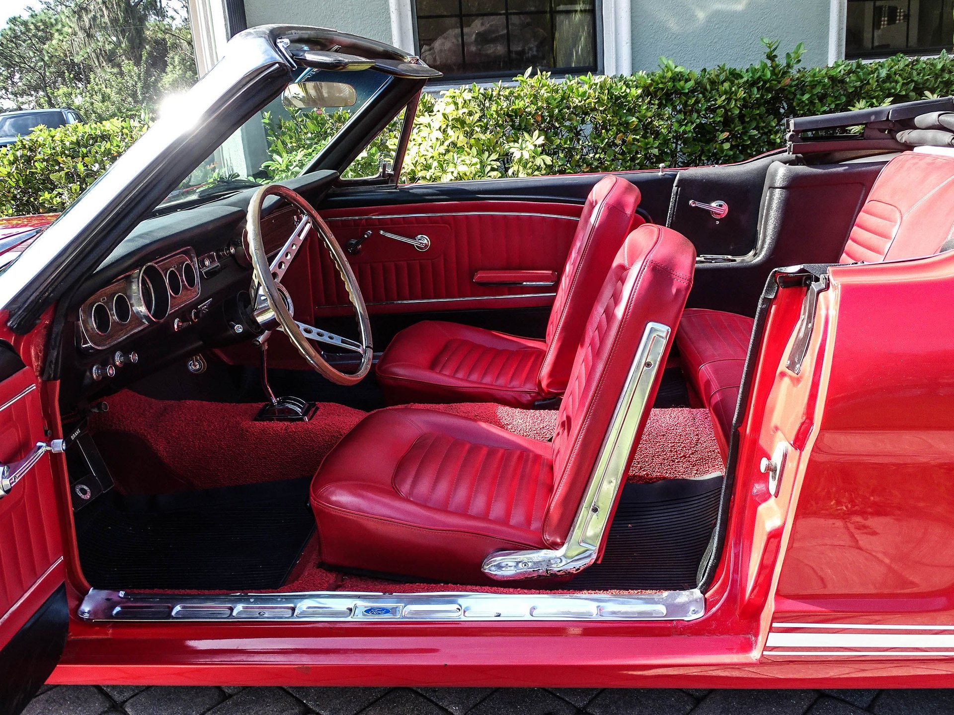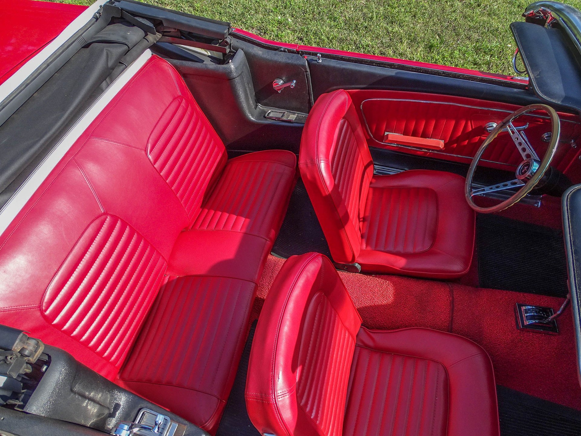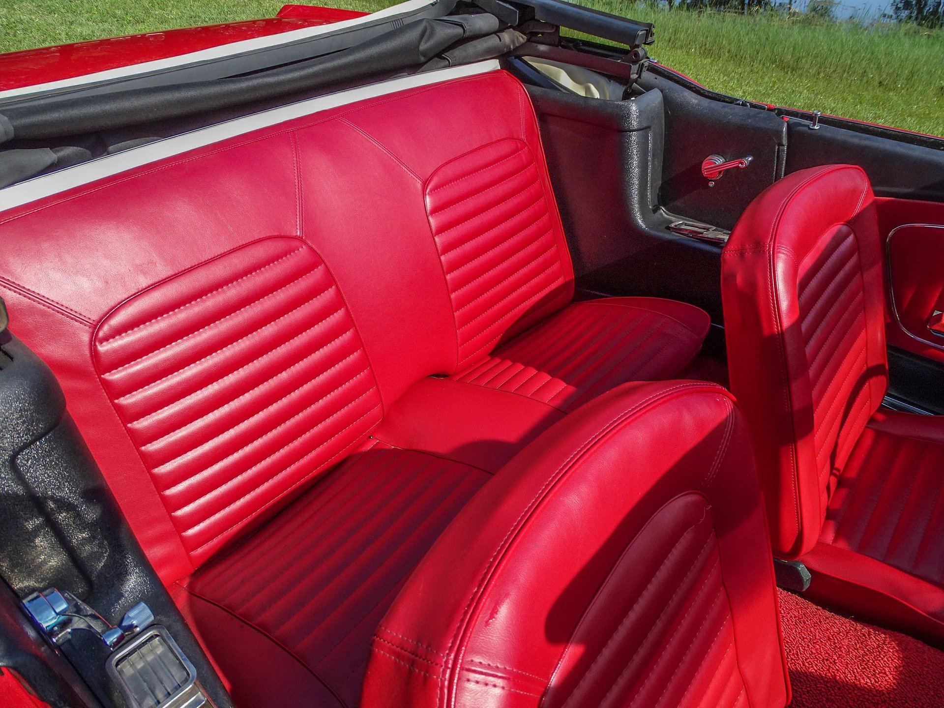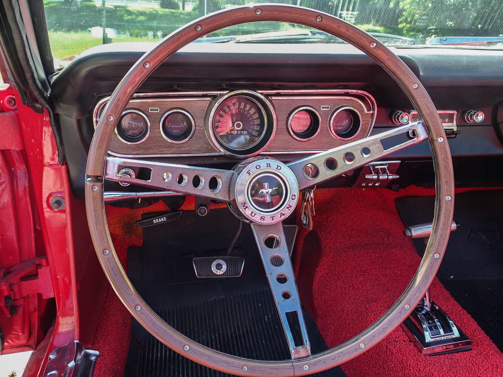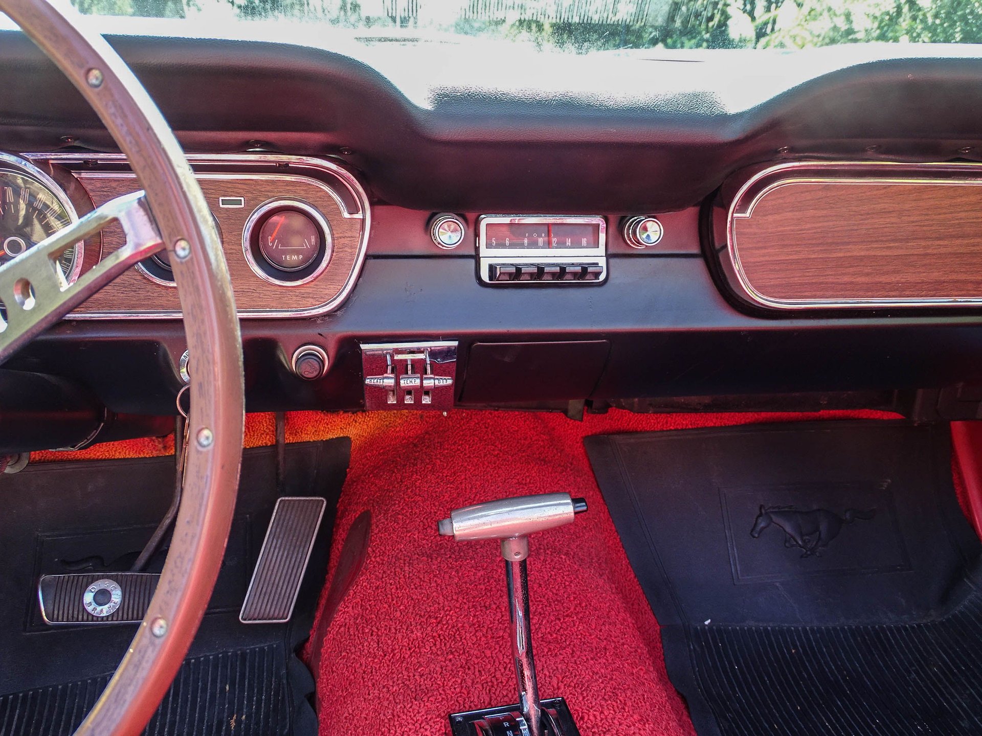 This pony car has a great look in Red gloss with a White top and red/black interior. The styled steel wheels are always a fan favorite and have a very rich look when paired with white wall radial tires. This Mustang was restored about 7 years ago and looks great! If you're looking for a fun first generation Mustang to cruise and show, this beauty is sure to please.