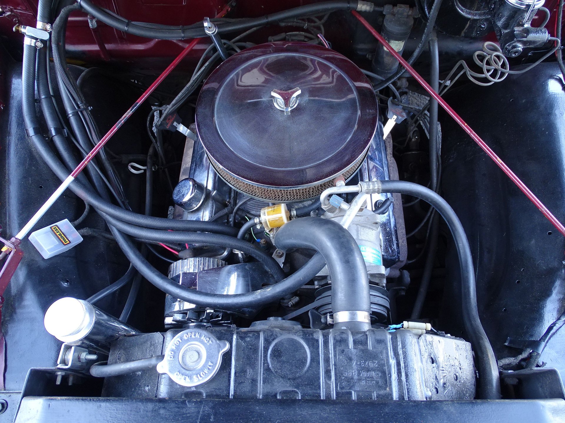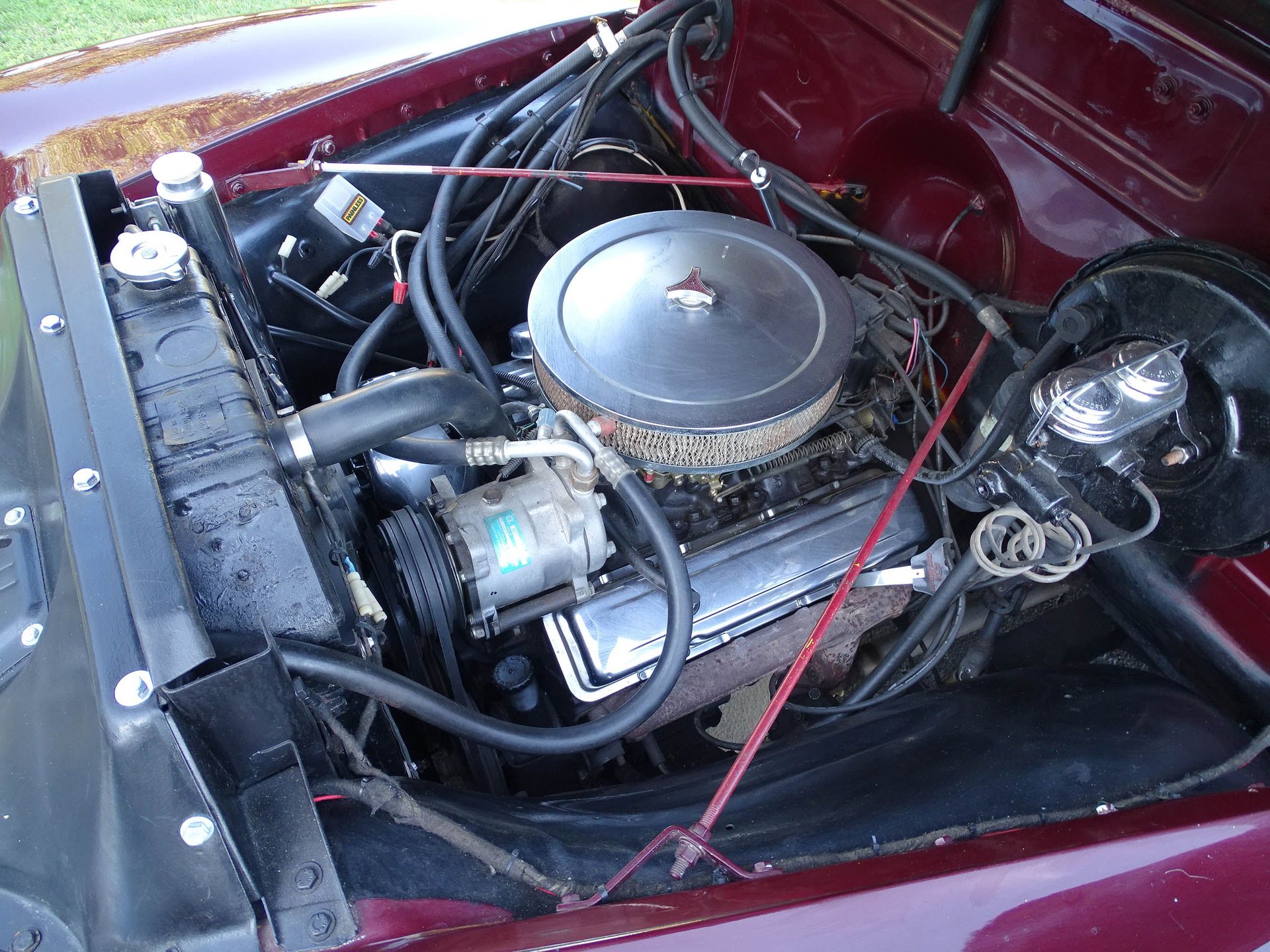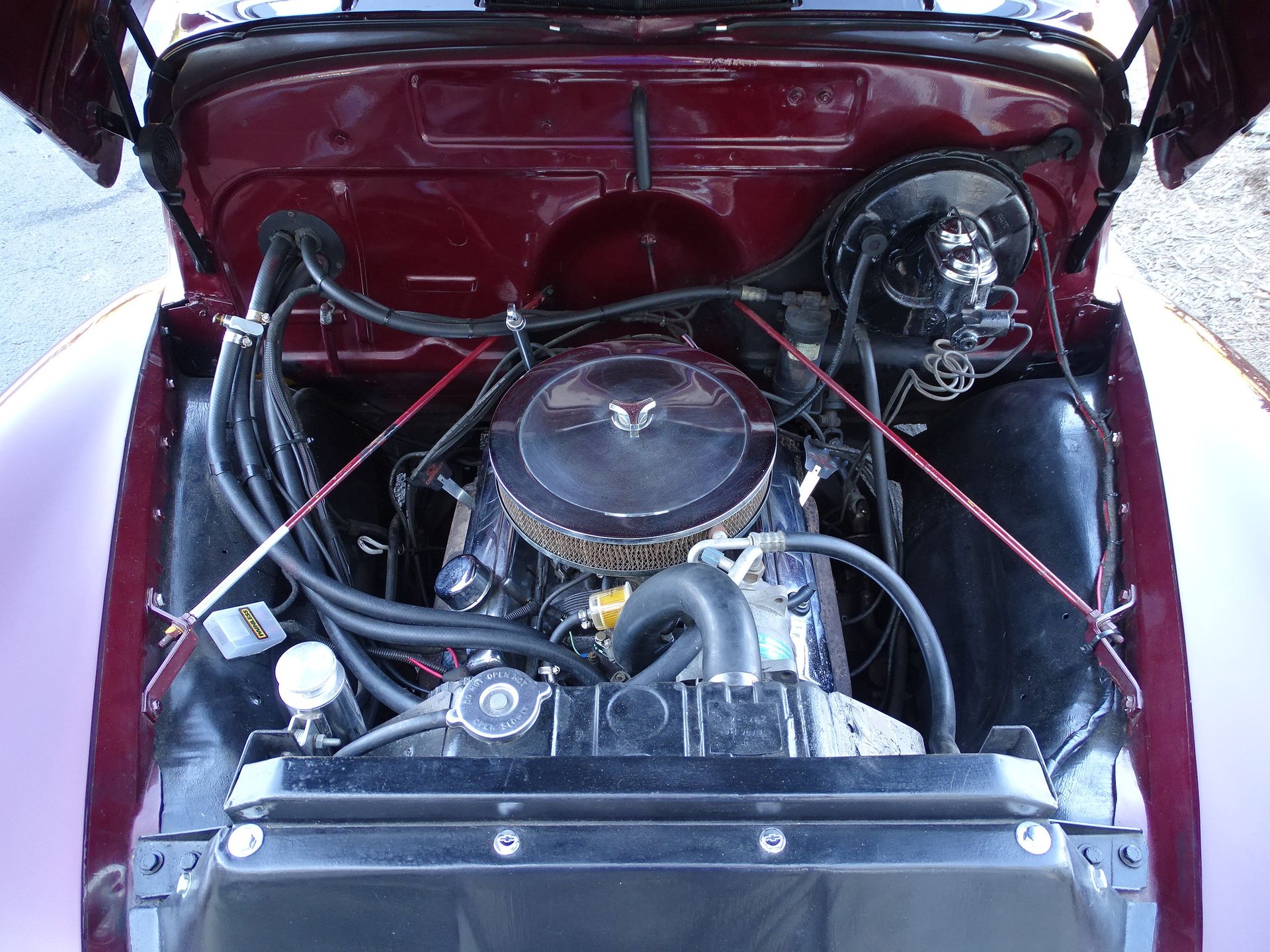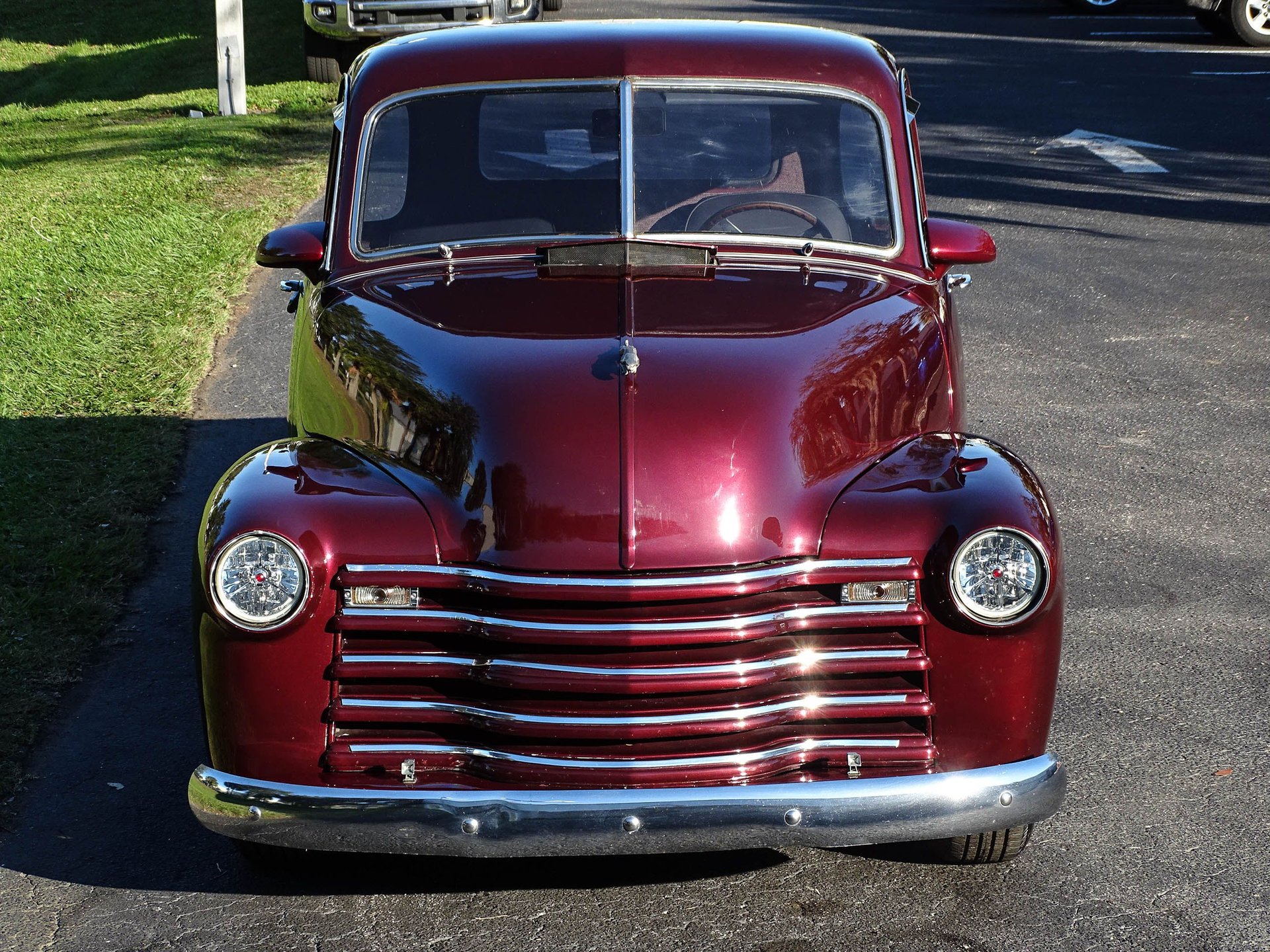 Black Cherry Metallic paint looks good on just about anything. But it looks really good coating a slick 1951 Chevrolet 3100 5-window pickup! This street rod truck is powered by a small block Chevy engine with A/C, power steering, and power brakes. An aftermarket intake, Holley 4-barrel carburetor, HEI ignition, and dress up kit to that V8 powerhouse. This truck just received a new fuel tank, cleaned fuel lines, new carburetor, new plugs, new fuel pump, new fuel filter, coolant flush, new thermostat, and more!