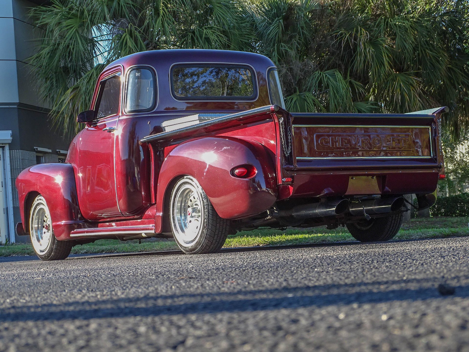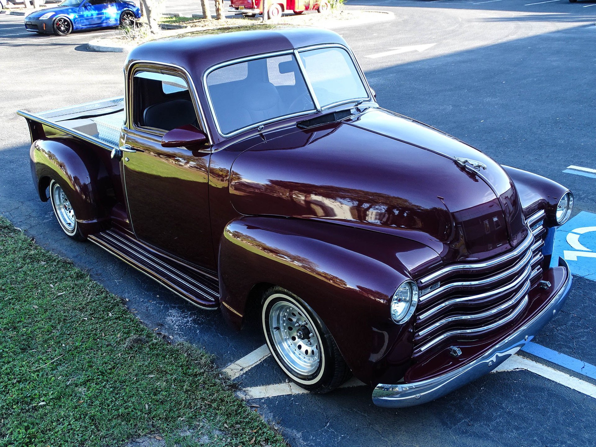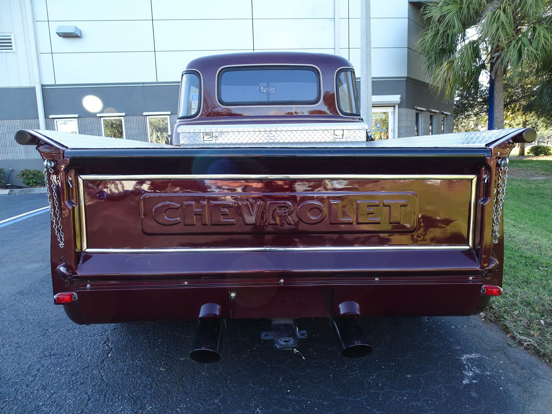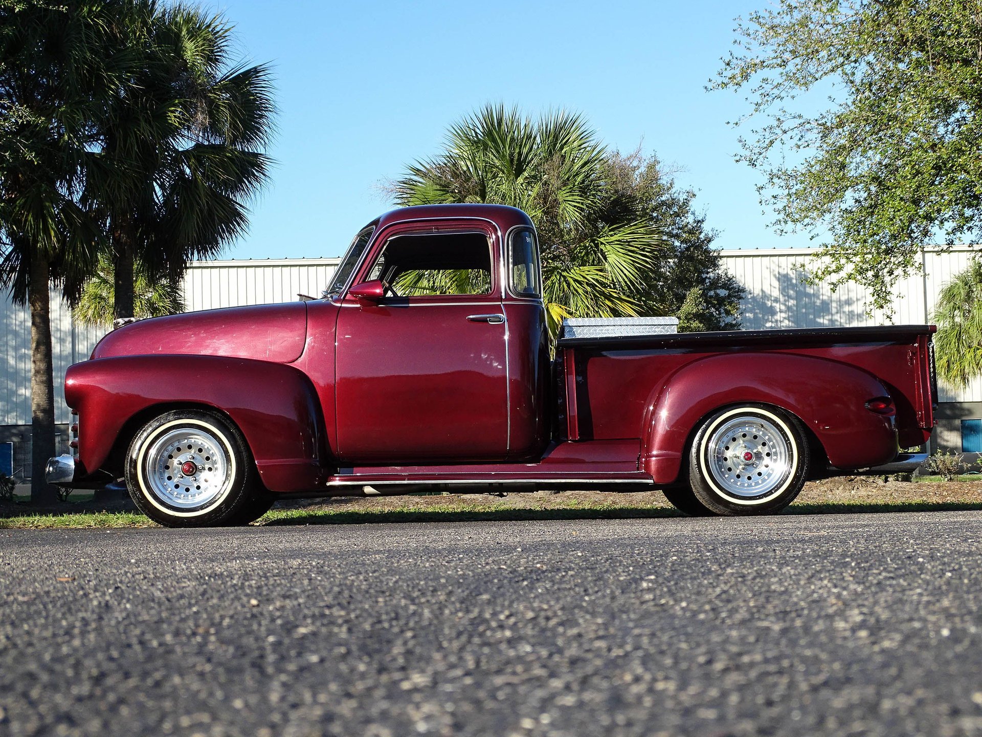 The bed has ample storage with a large diamond plate toolbox, and the inside of the bed is covered in diamond plate as well which not only looks great, but makes this bed much more usable than a painted one. Alloy wheels are wrapped in white wall radial tires bringing a modern touch to the exterior. There are several custom touches on this truck, but most noticeable are the 1959 Cadillac taillights that have been frenched into the rear fenders! The headlights are also frenched in with tri-bar headlights, and a Jaguar hood ornament has been added up front. Chrome front bumper, a painted grill, and a roll pan out back finish off the exterior in style. This is an older build that has been garage kept and carries a clean Florida title. A brand new carburetor was just installed, along with other normal maintenance items like fluids, draining the fuel tank and putting in fresh gas with stabilizer, and a tune up.