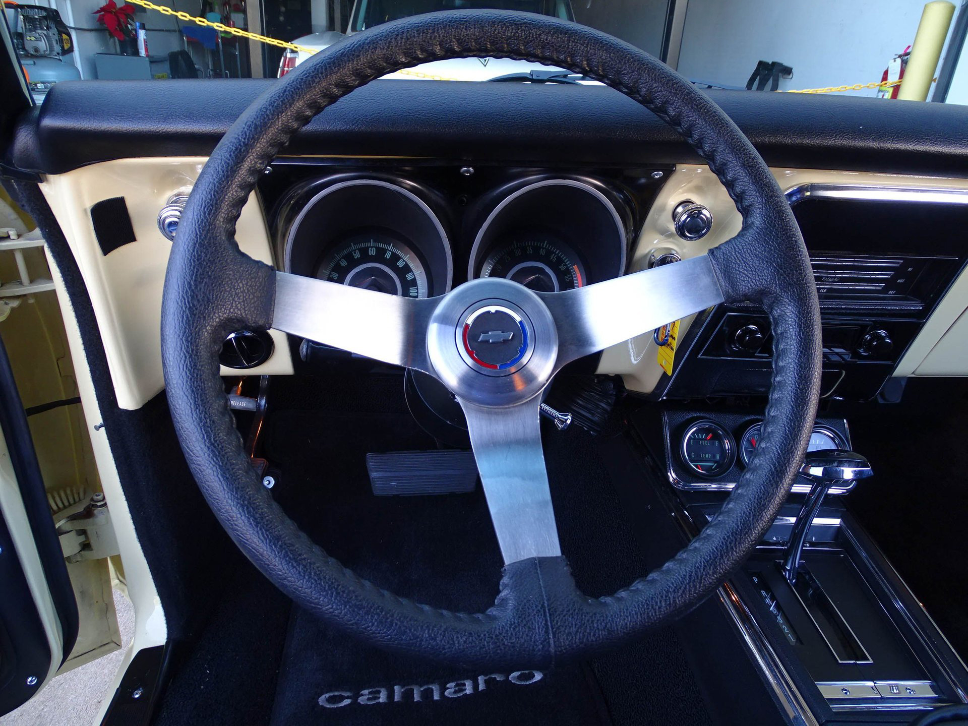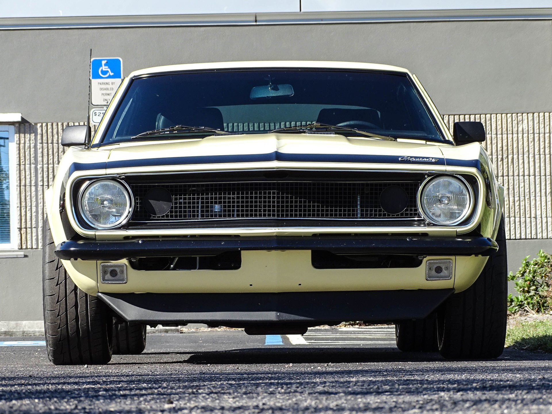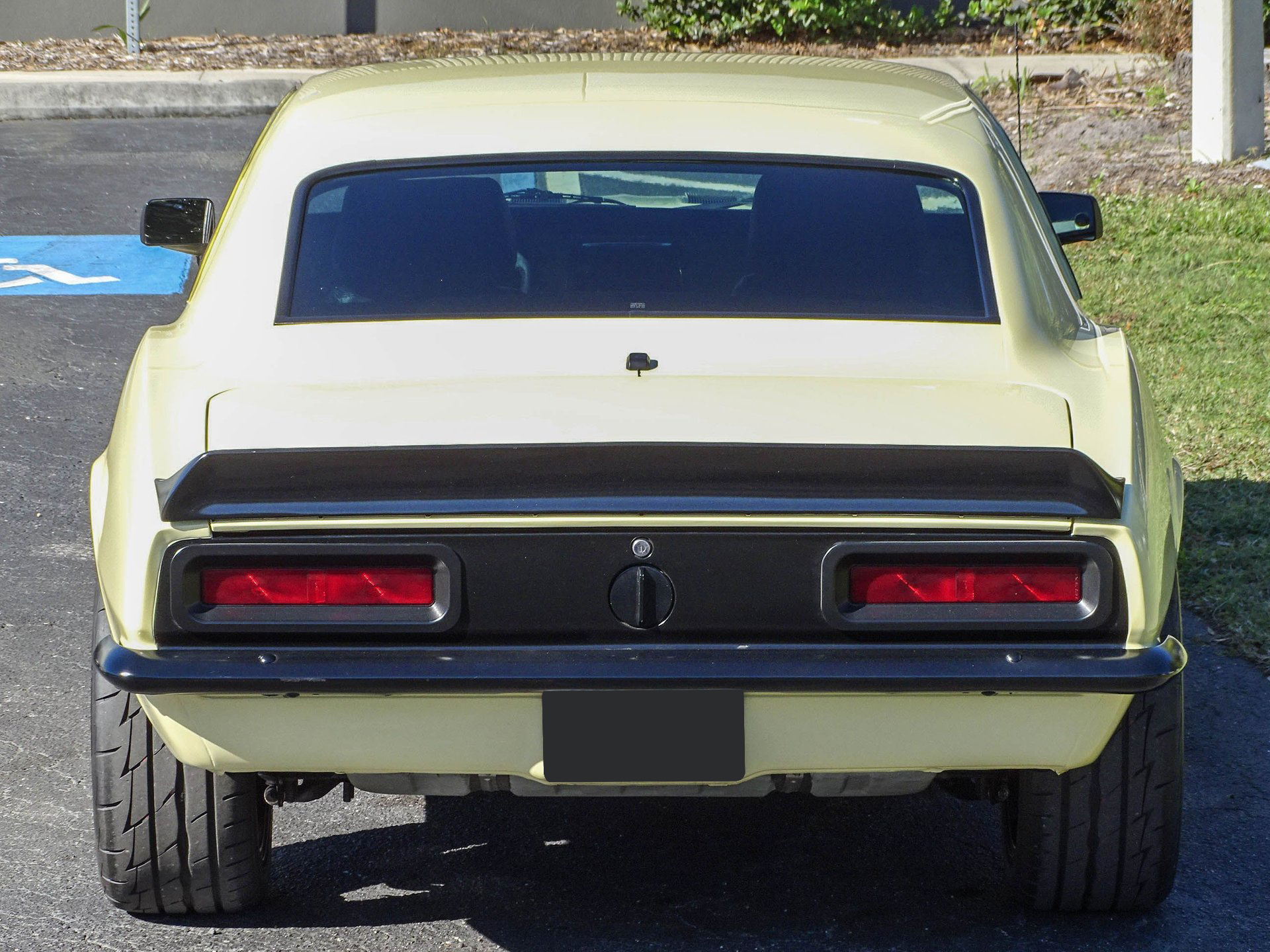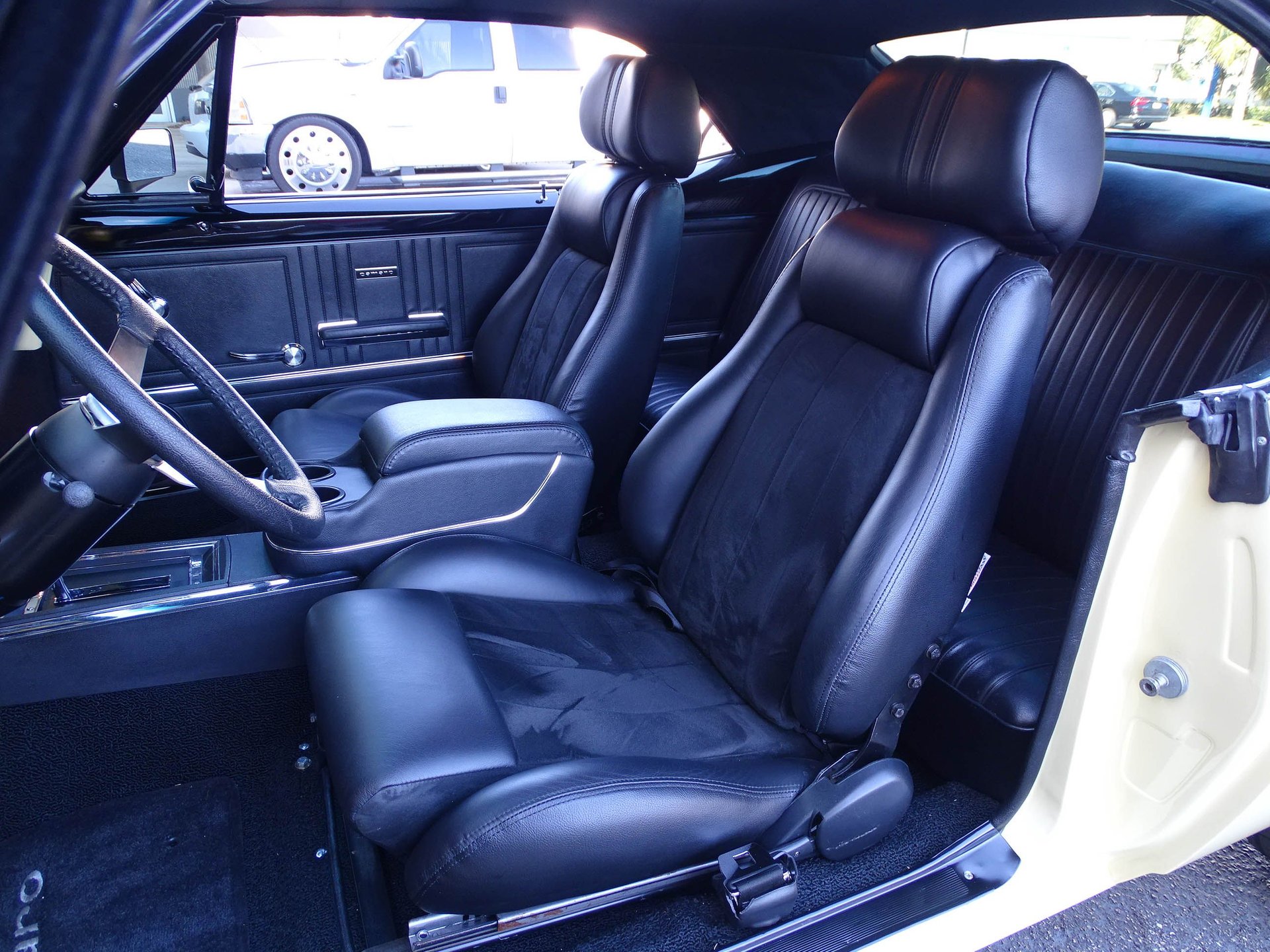 Starting with the exterior, this 67 Camaro has a distinctly modern look with the satin black Mandrus Arrow staggered alloy wheels in 17x8 up front and 19x9.5 in the rear. Match that with blacked out trim, ceramic tinted windows, a black spoiler, black nose stripe, and bumpers and you've got a great combination of classic and absolutely sinister looking! Dual beam LED headlights and LED taillights ensure you are seen, as if everyone won't already be staring! The paint color is Butternut Yellow, which is the color this Camaro left the factory wearing.